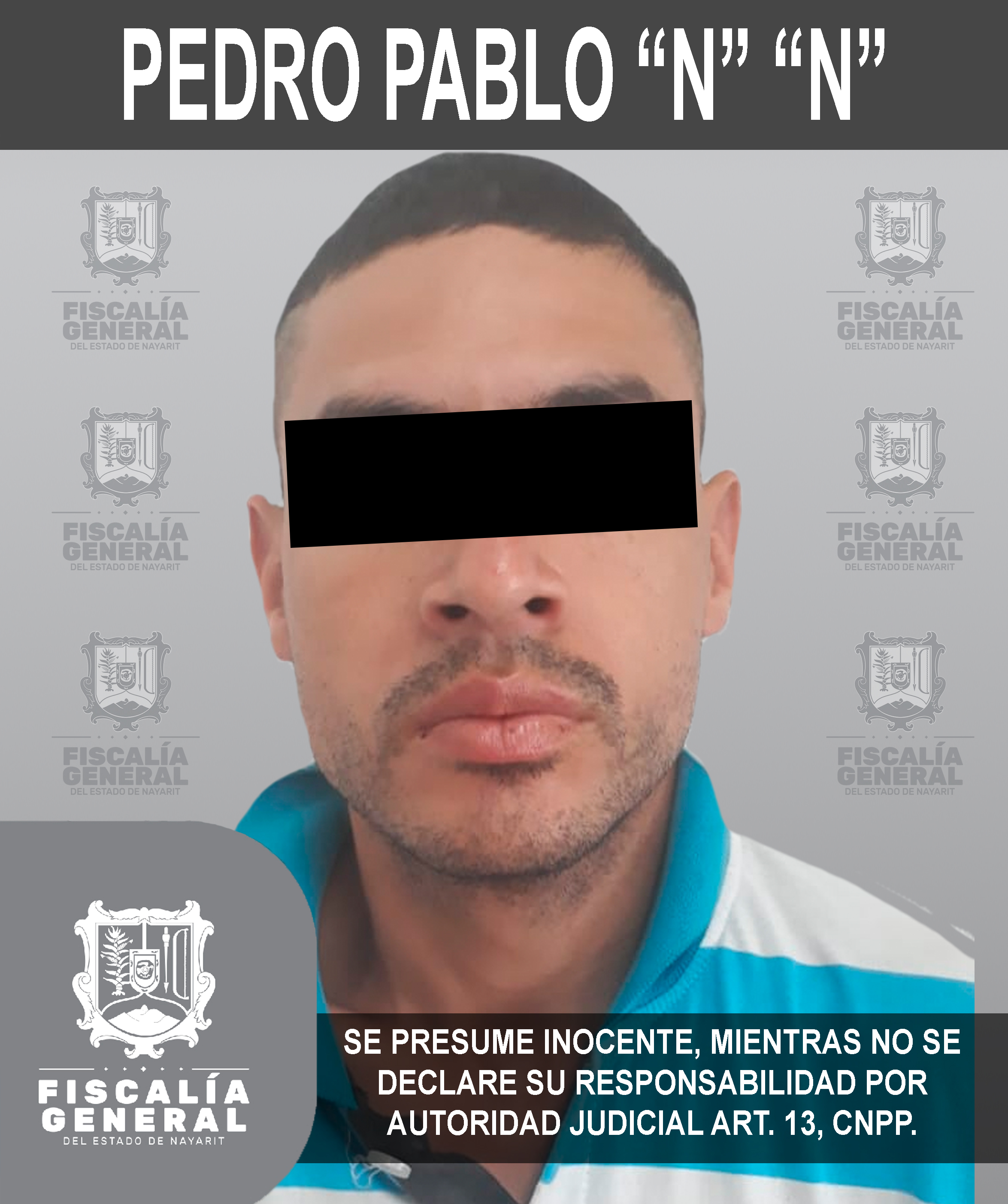 Pedro Pablo“N” “N” fue capturado según orden de aprehensión girada, por su probable participación en el delito de robo calificado en agravio de un plantel educativo -Jardín de Niños- de la Secretaría de Educación del Estado de Nayarit. El ...
