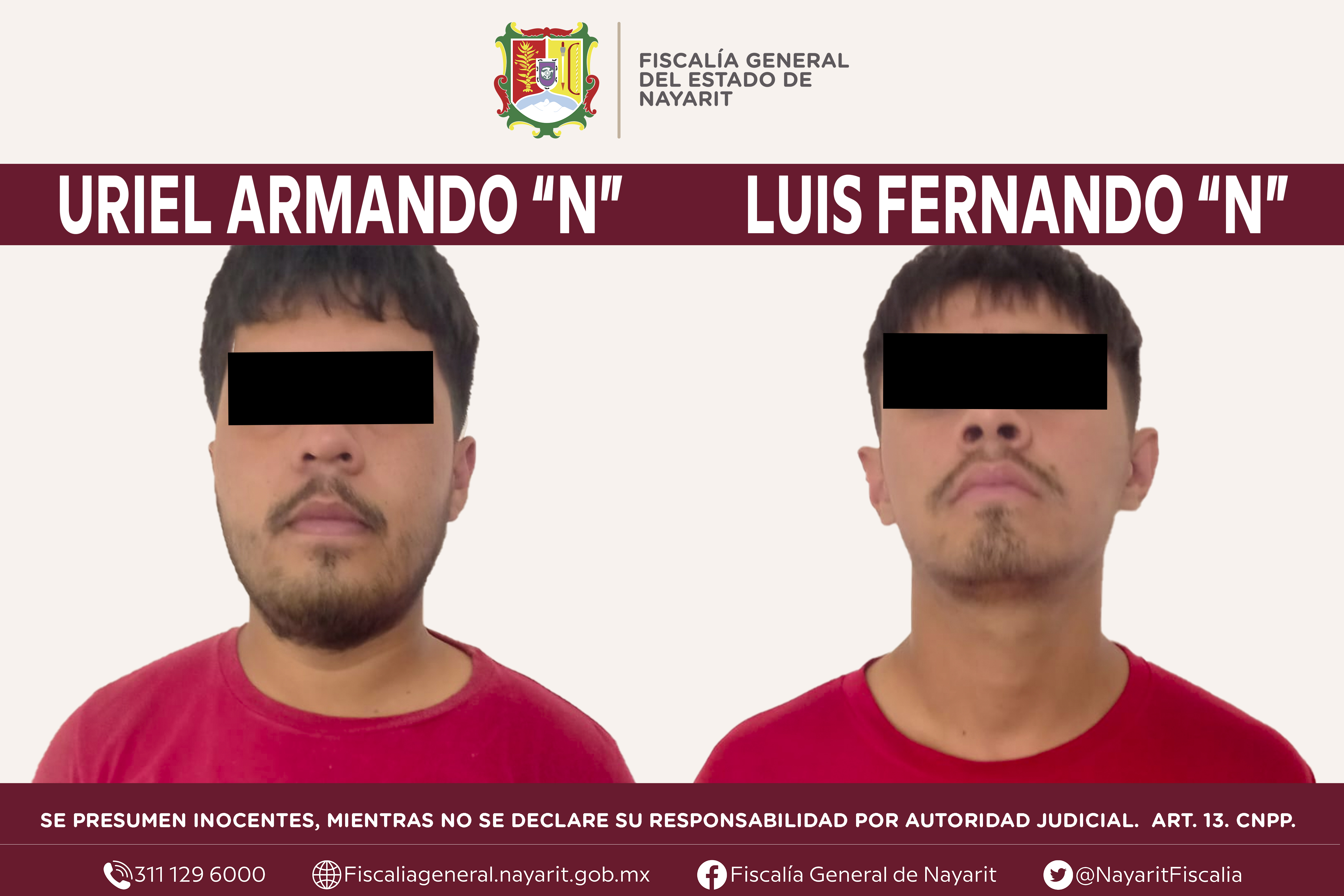 La Fiscalía General del Estado a través de la Agencia de Investigación Criminal dio cumplimiento a una orden de aprehensión en el municipio de Ixtlán del Río contra Luis Fernando “N” y Uriel Armando “N”, por su presunta participación en he...