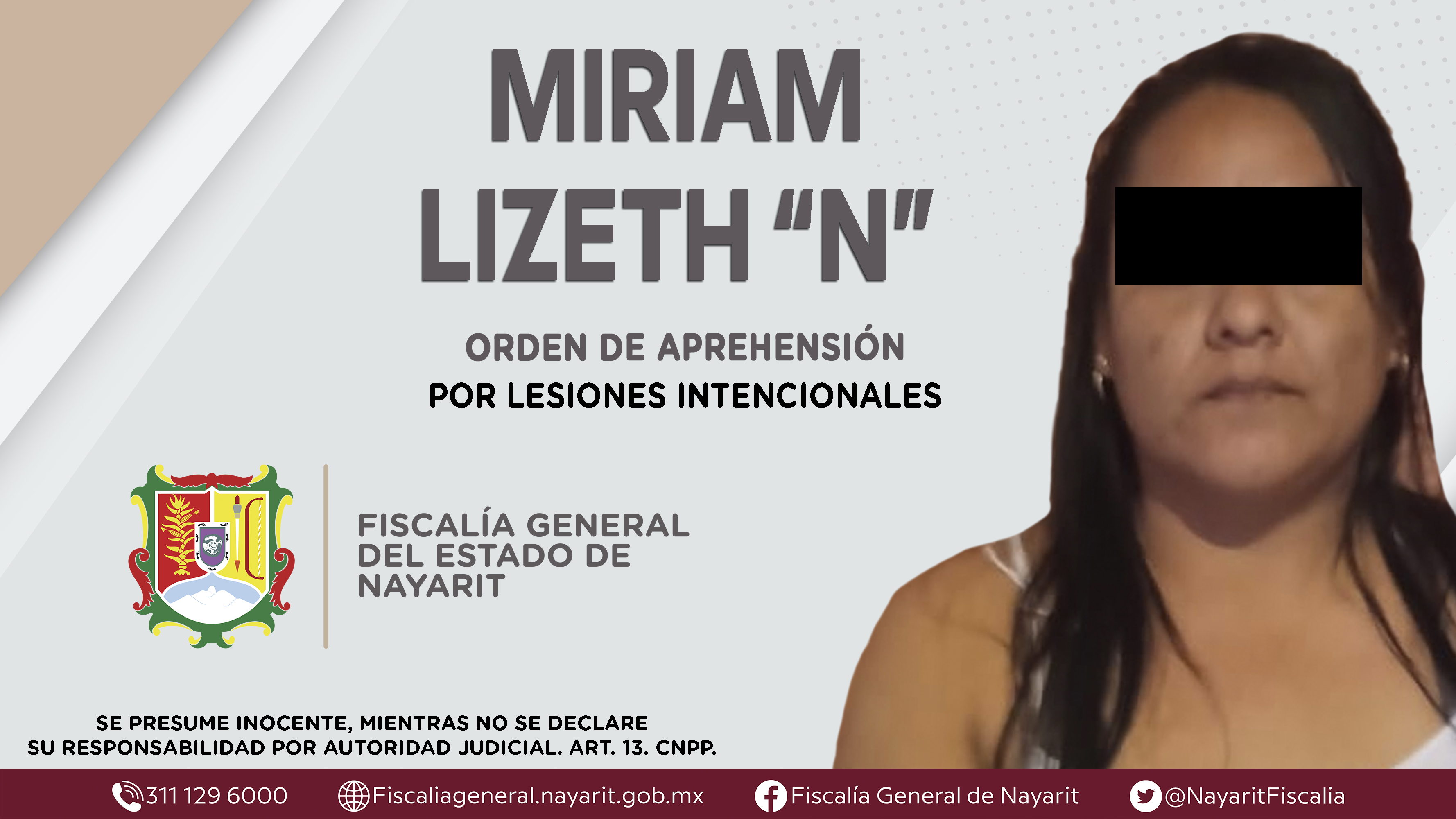 Elementos de la Agencia de Investigación Criminal de Nayarit ejecutaron una orden de aprehensión en la localidad El Capomo, municipio de Compostela contra Miriam Lizeth “N”, por su presunta participación en hechos que según apreciación de la ley...