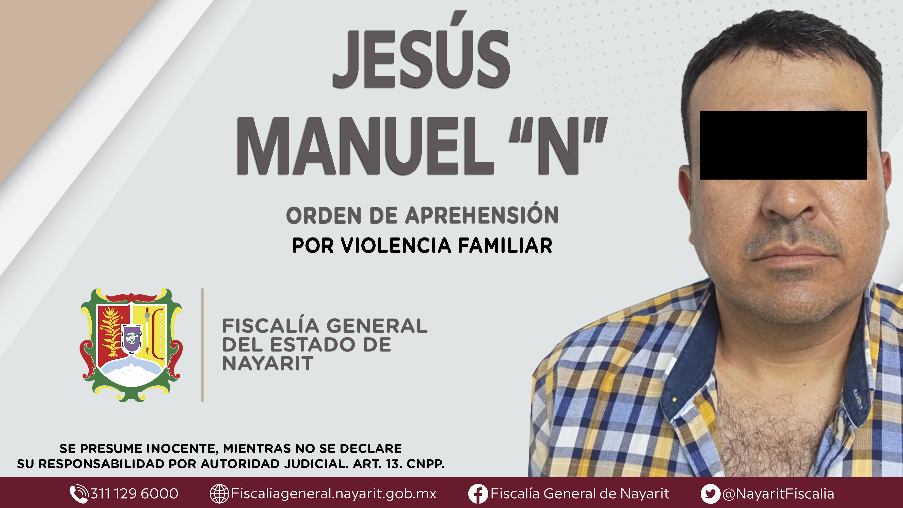 Elementos de la Agencia de Investigación Criminal de Nayarit ejecutaron una orden de aprehensión en la ciudad de Tepic contra Jesús Manuel “N”, por su presunta participación en hechos que según apreciación de la ley encuadran el delito de viole...