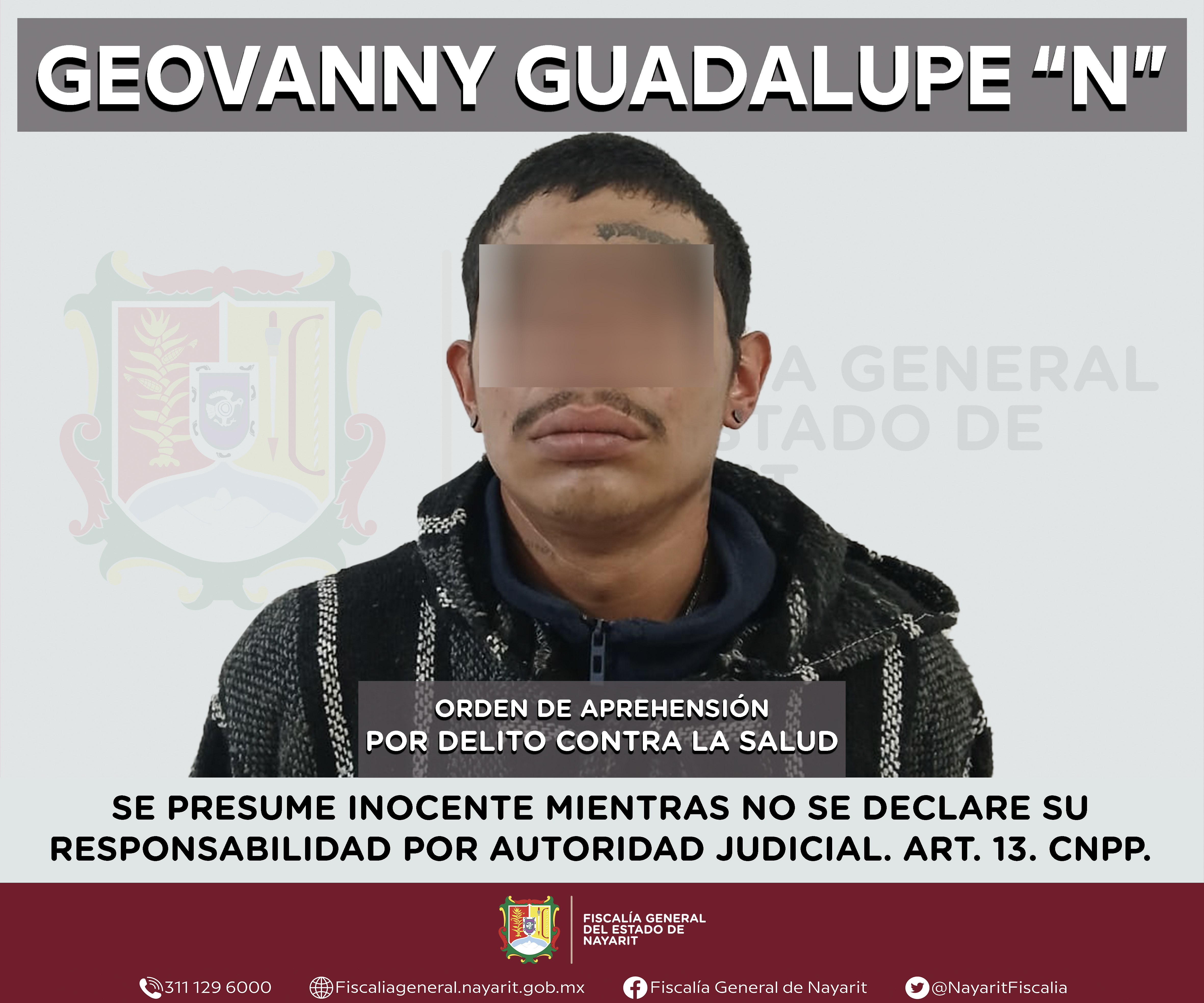 La Fiscalía General de Nayarit a través de la Agencia de Investigación Criminal ejecutó una orden de aprehensión en la ciudad de Tepic contra Geovanny Guadalupe “N”, por su probable participación en hechos que para la ley configuran el delito c...
