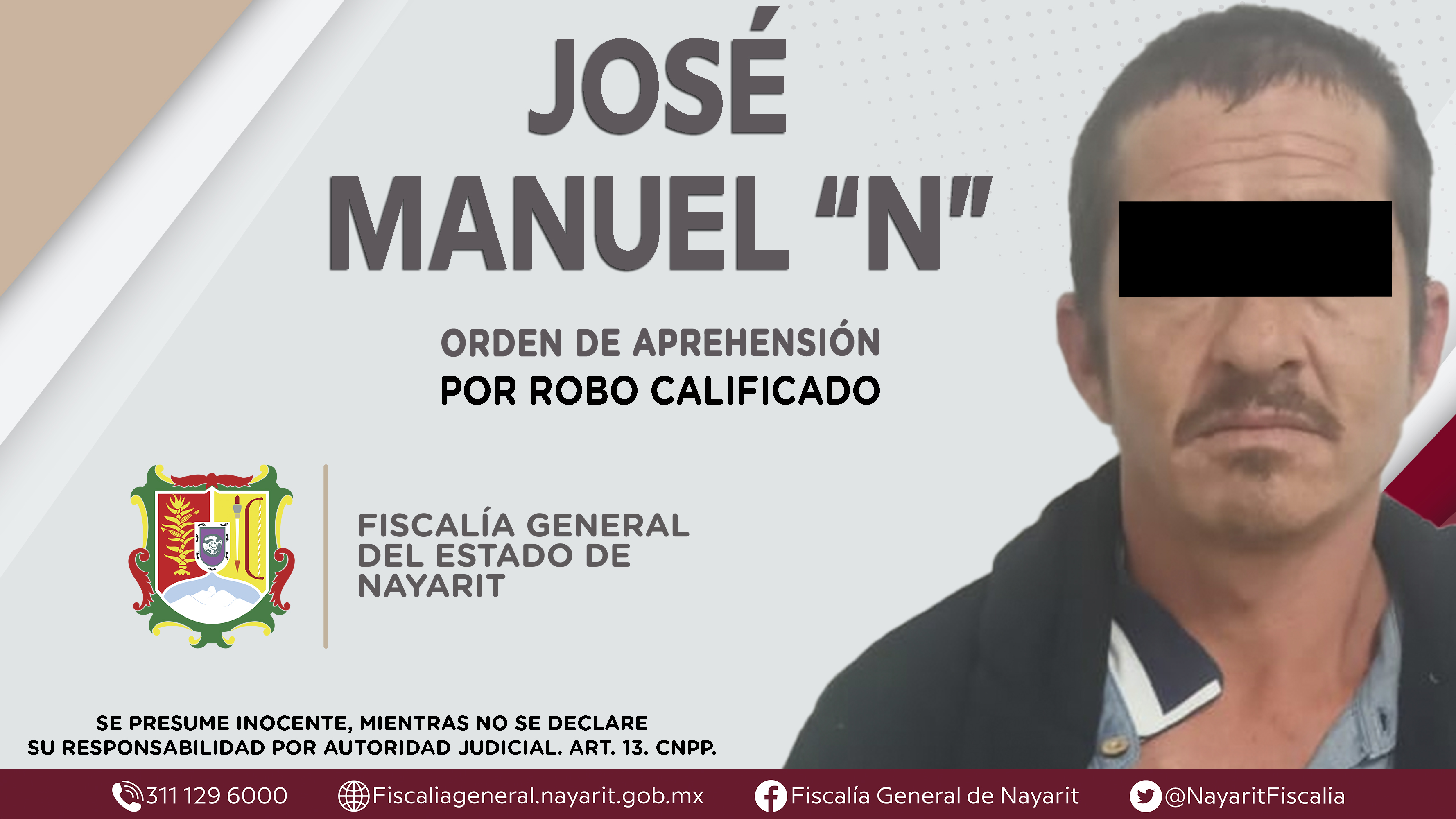 Elementos de la Agencia de Investigación Criminal dieron cumplimiento a una orden de aprehensión en la ciudad de Tepic contra José Manuel “N”, quien es originario y vecino de la capital nayarita, por su presunta participación en hechos que bajo l...