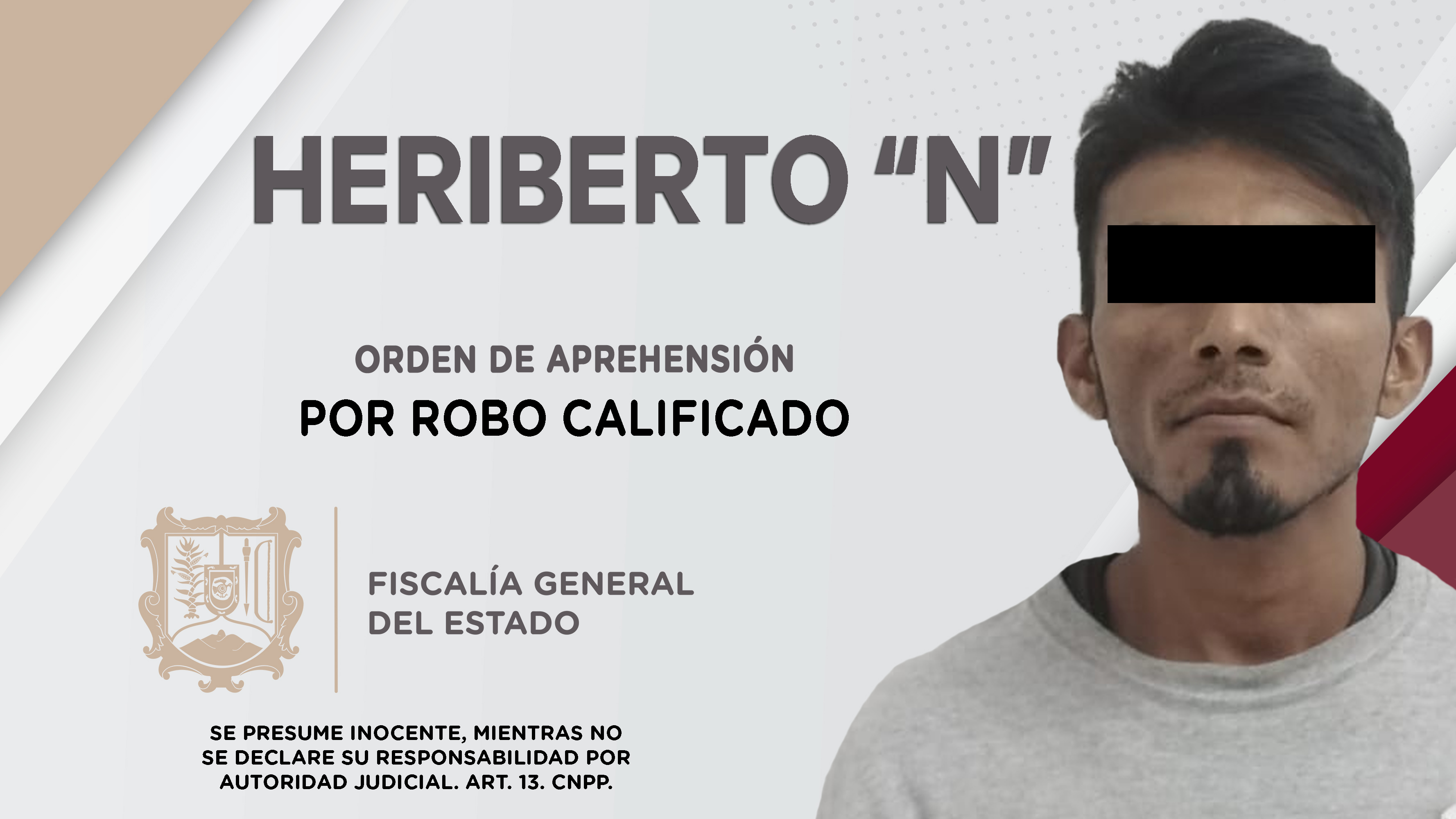 En el poblado Valle de Banderas, municipio de Bahía de Banderas, elementos de la Agencia de Investigación Criminal dieron cumplimiento a una orden de aprehensión contra Heriberto “N”, por su probable responsabilidad penal en hechos que para la ley...