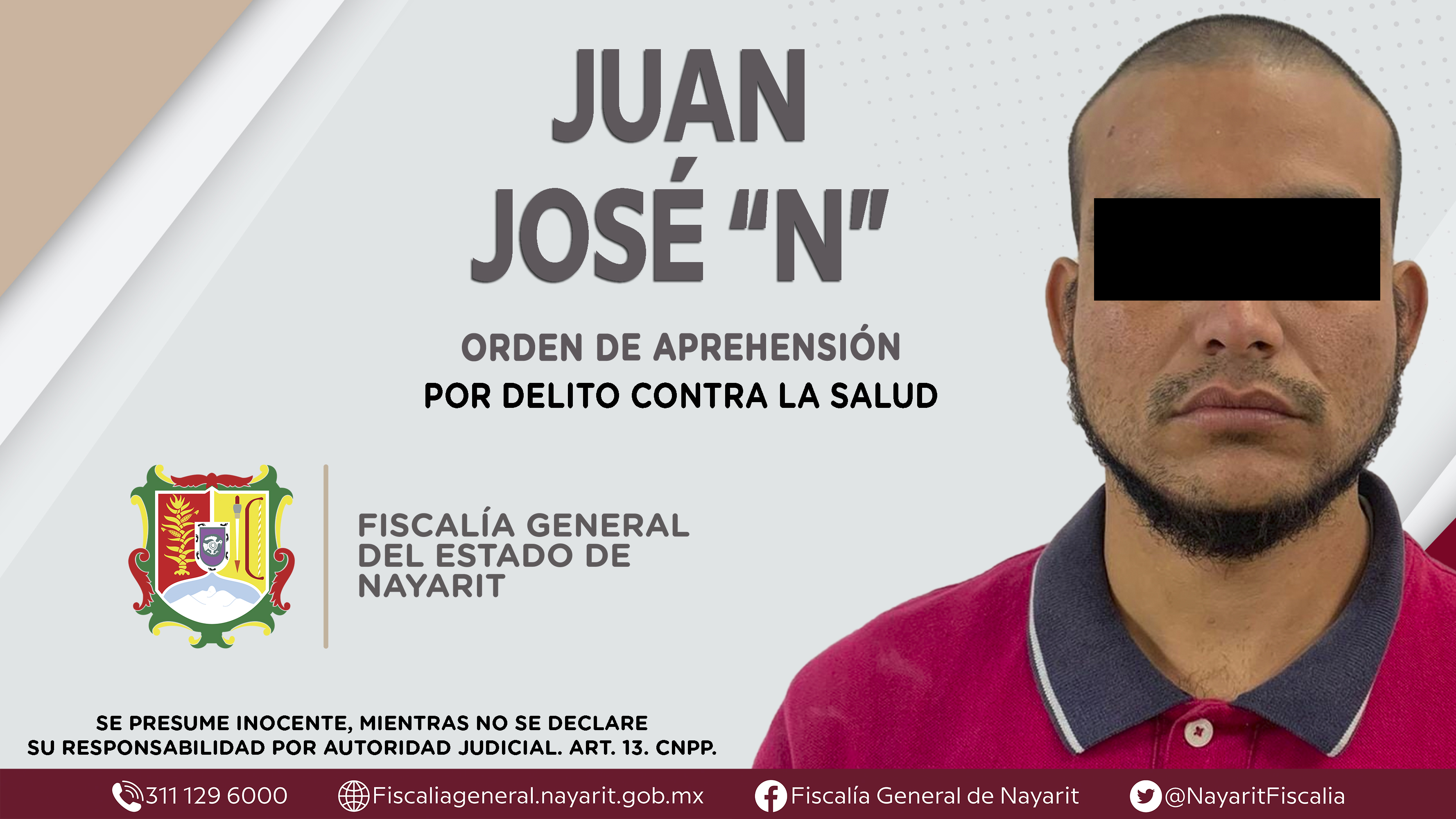 La Fiscalía General del Estado a través de la Agencia de Investigación Criminal cumplimentó una orden de aprehensión en la ciudad de Tepic contra Juan José “N”, por su presunta participación en hechos que según apreciación de la ley encuadra...