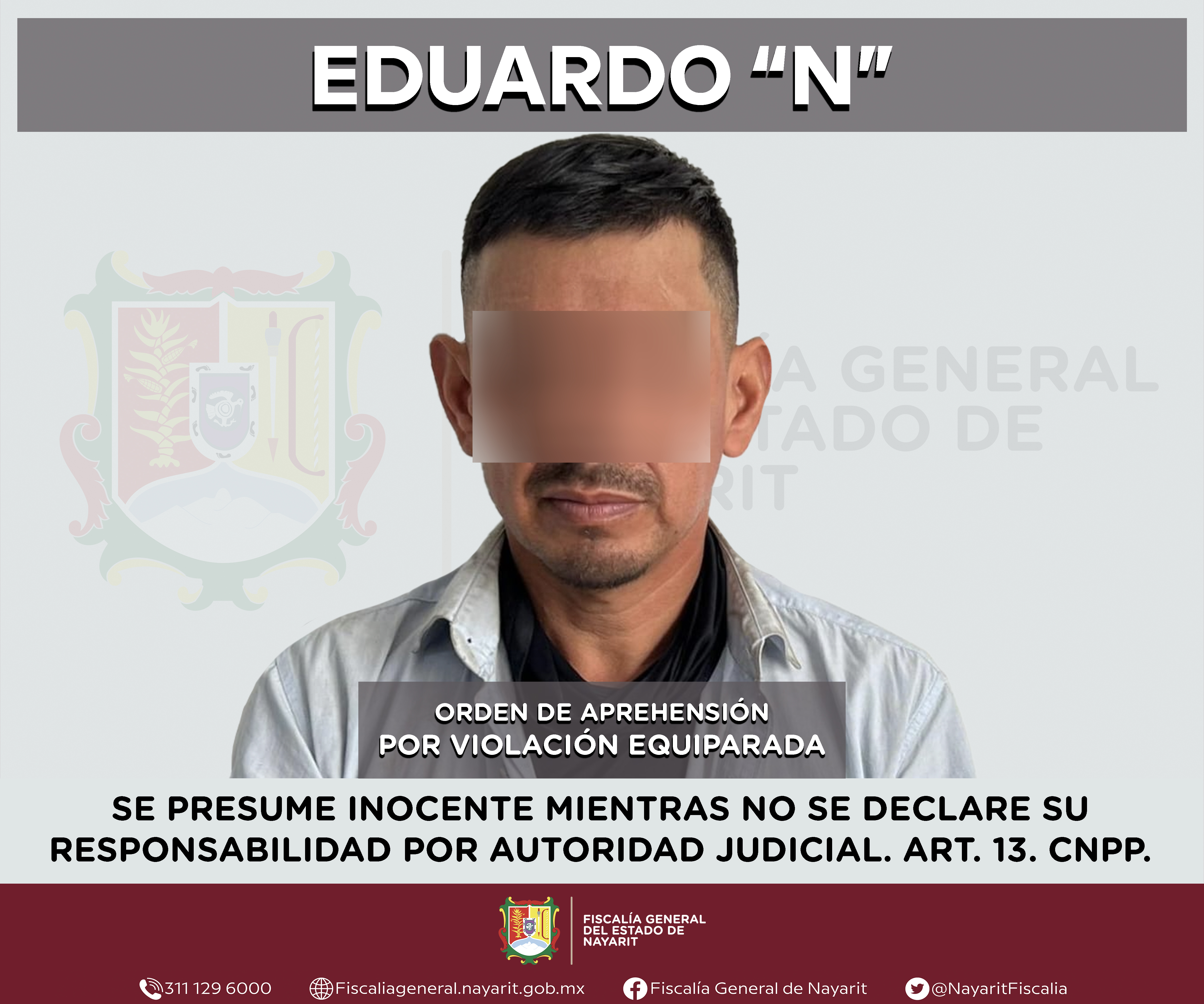Elementos de la Agencia de Investigación Criminal de Nayarit ejecutaron una orden de aprehensión en la localidad San Cayetano, municipio de Tepic contra Eduardo “N”, por su presunta participación en hechos que según apreciación de la ley configu...