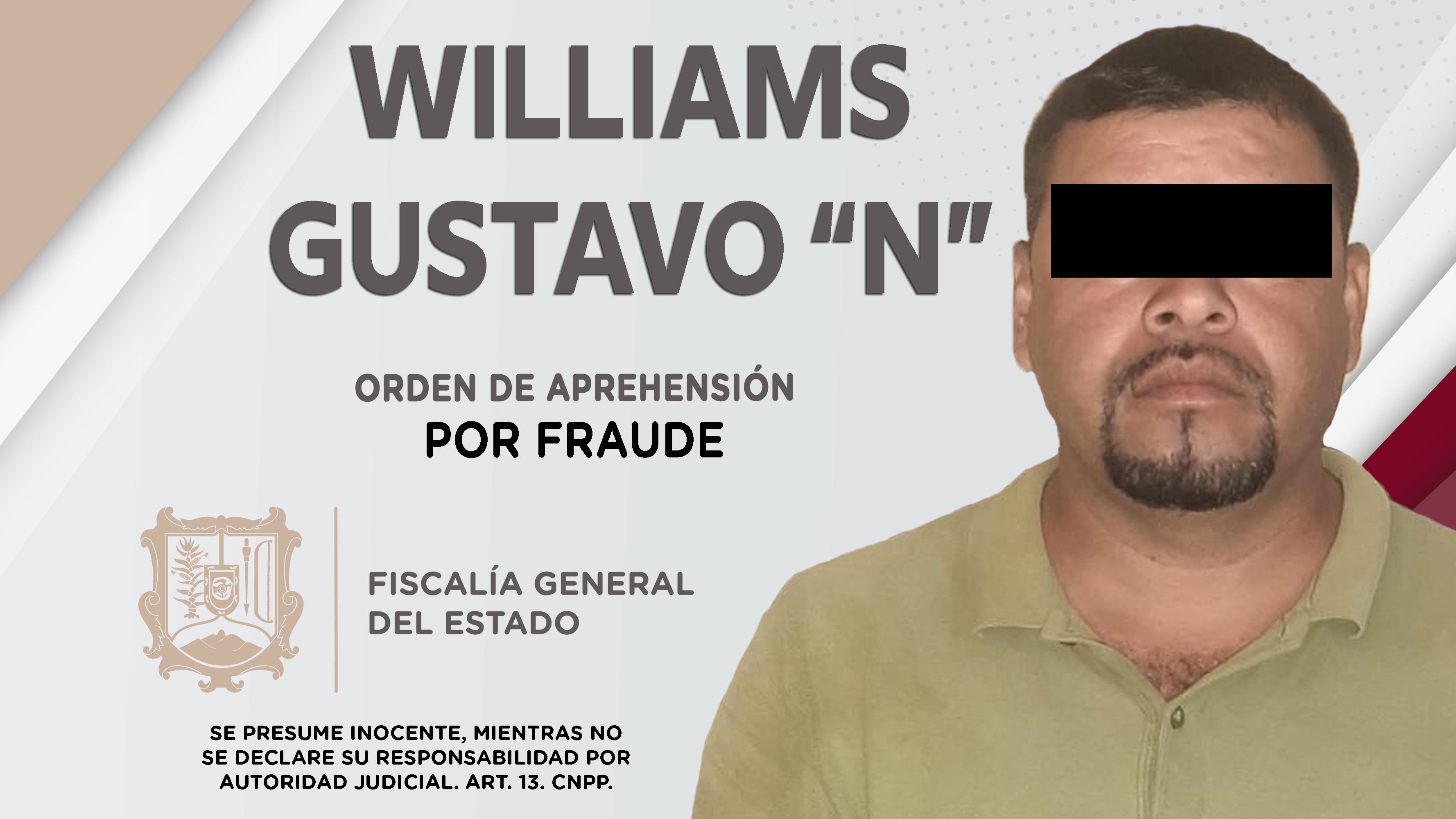 En el municipio de Compostela, elementos de la Agencia de Investigación Criminal ejecutaron una orden de aprehensión contra Williams Gustavo “N”, por su probable responsabilidad penal en hechos que según la ley configuran el delito de fraude, come...