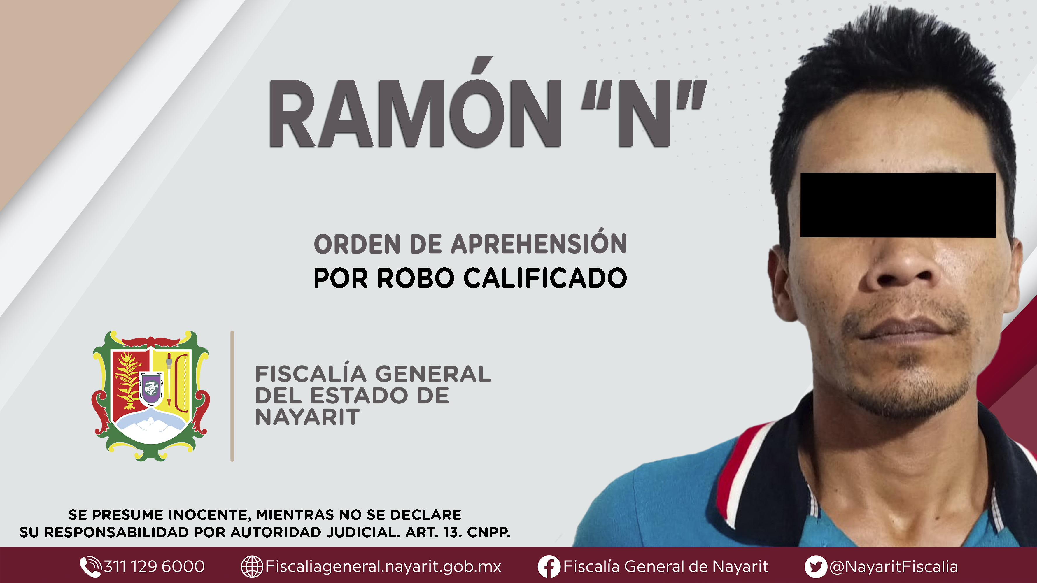 La Fiscalía General del Estado a través de la Agencia de Investigación Criminal dio cumplimiento a una orden de aprehensión en la capital nayarita contra Ramón “N”, por su presunta participación en hechos que bajo la apreciación de la ley conf...
