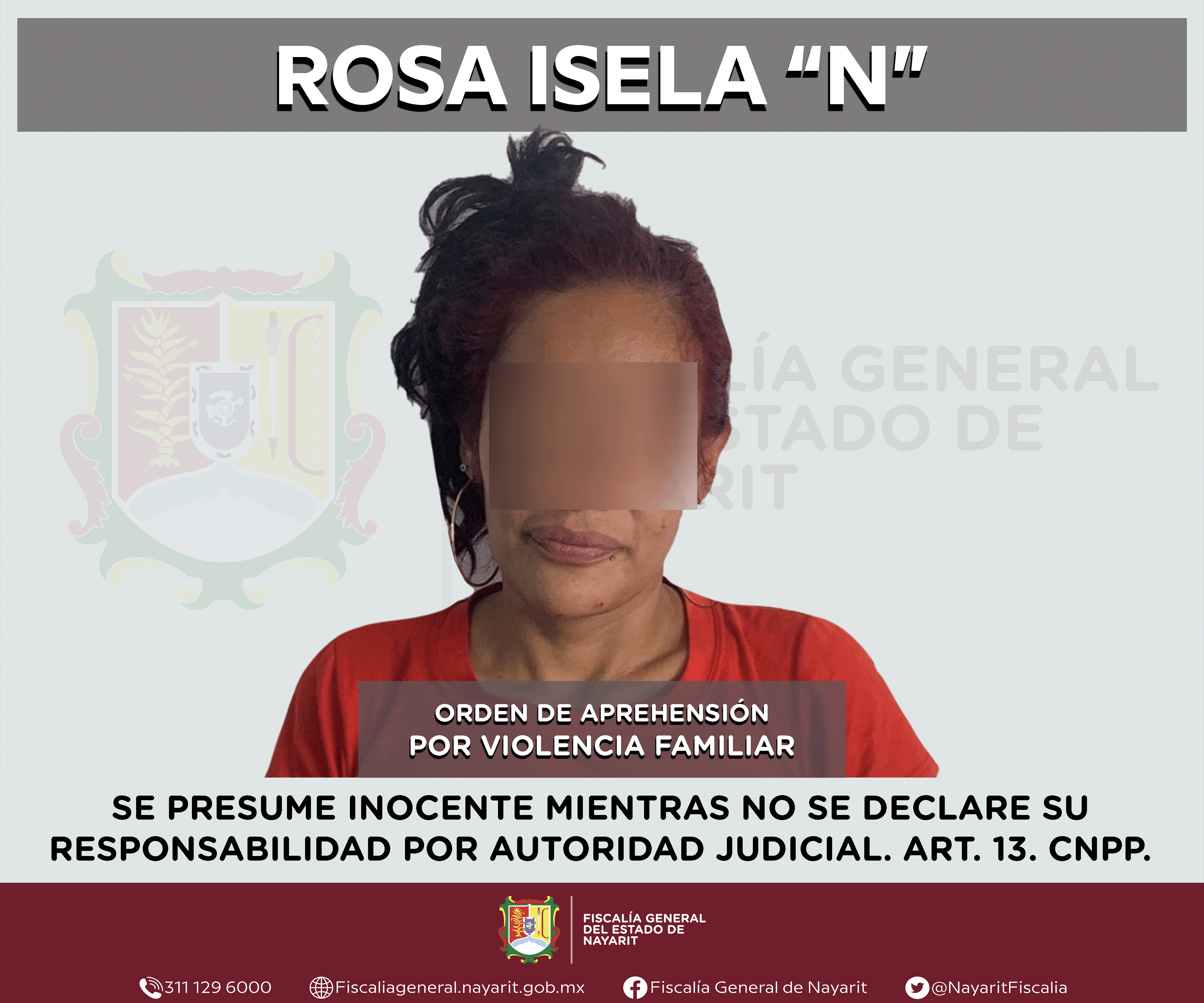 Elementos de la Agencia de Investigación Criminal de Nayarit ejecutaron una orden de aprehensión en la ciudad de Tepic contra Rosa Isela “N”, por su probable participación en hechos que para la ley configuran el delito de violencia familiar, comet...
