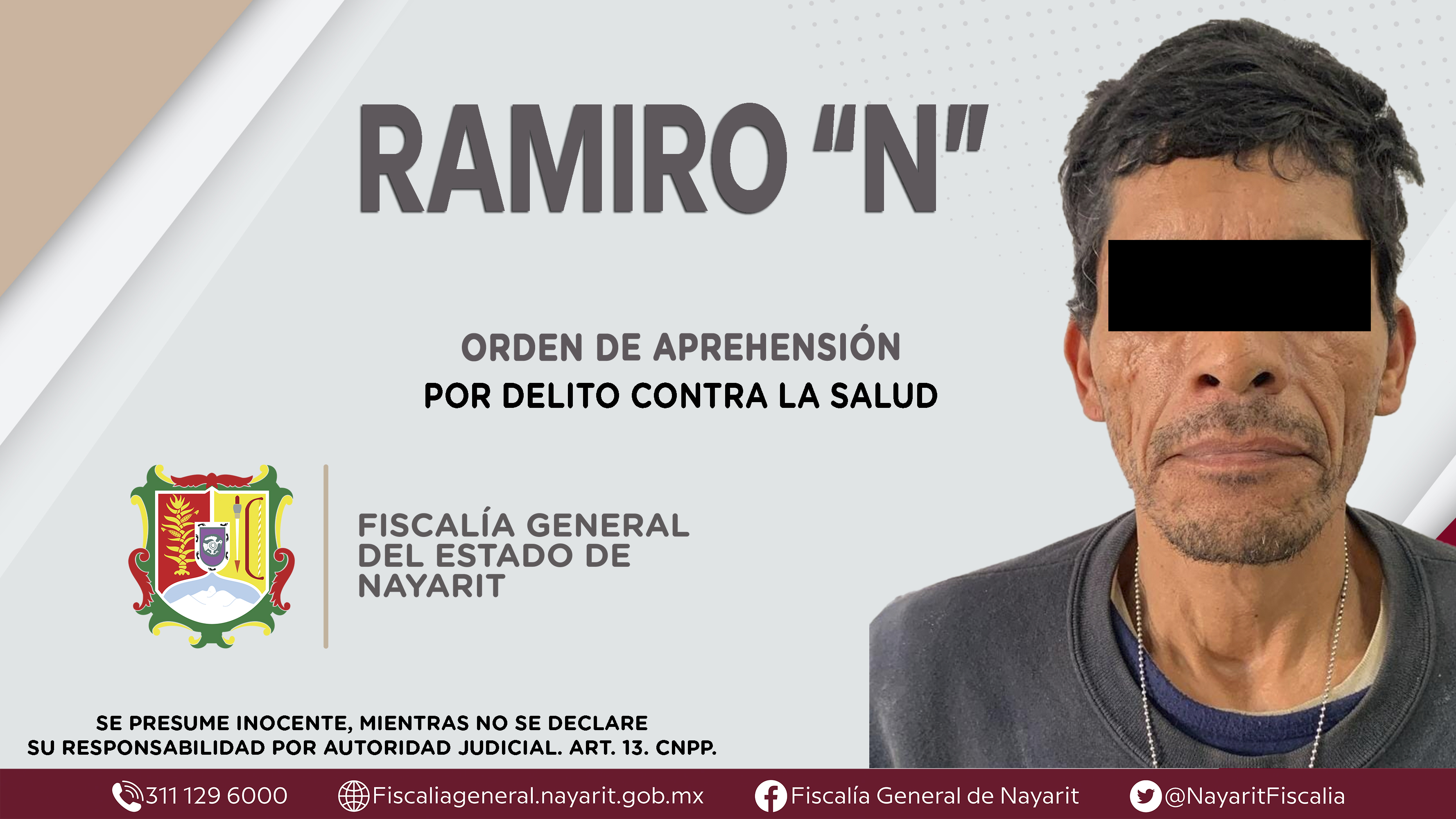 Elementos de la Agencia de Investigación Criminal de Nayarit ejecutaron una orden de aprehensión en la ciudad de Tepic contra Ramiro “N”, por su presunta participación en hechos que según apreciación de la ley encuadran el delito contra la salud...
