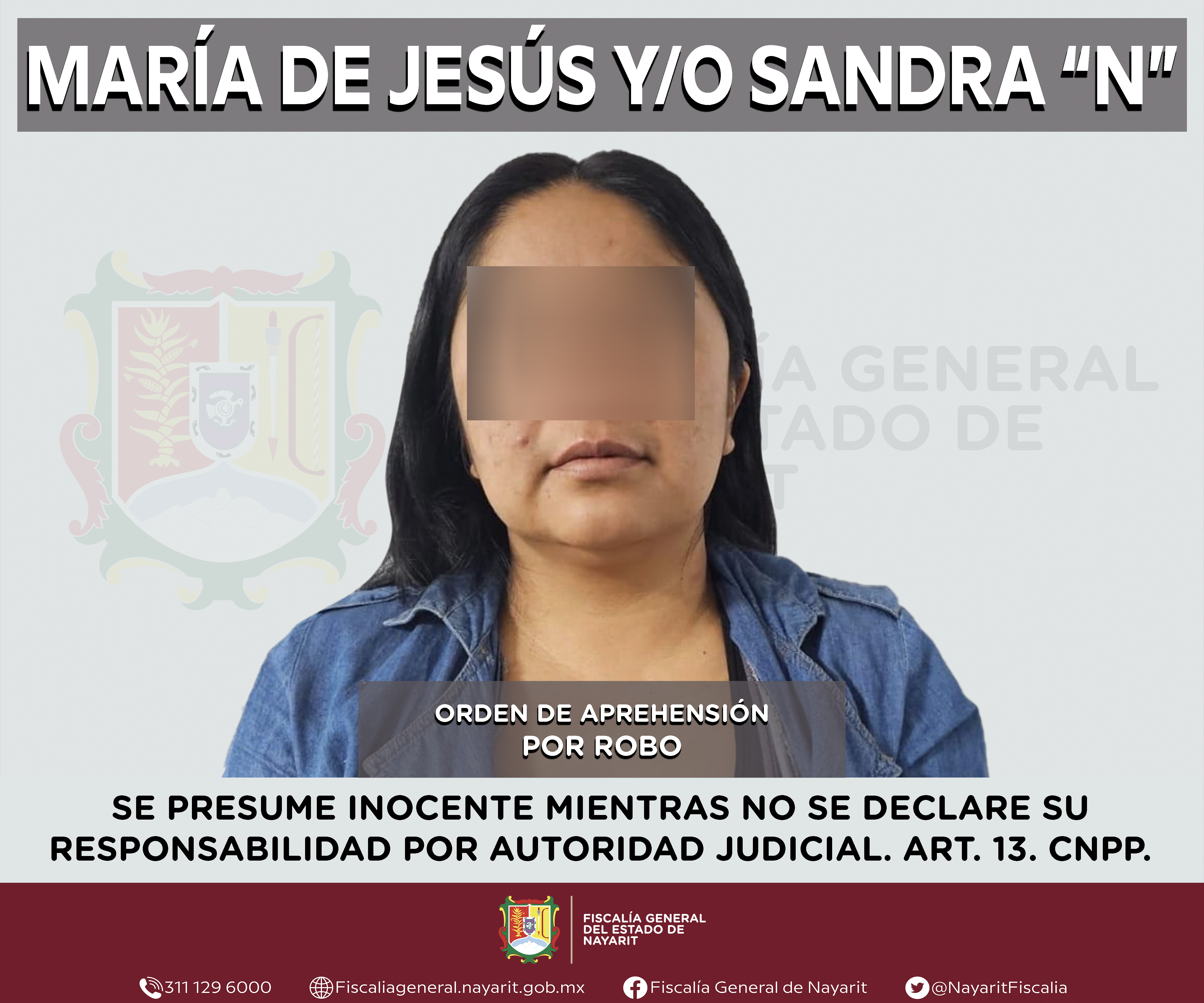En colaboración con la Fiscalía General de la Ciudad de México, la Fiscalía General de Nayarit a través de la Agencia de Investigación Criminal ejecutó una orden de aprehensión en la ciudad de Tepic contra María de Jesús y/o Sandra “N”, por...