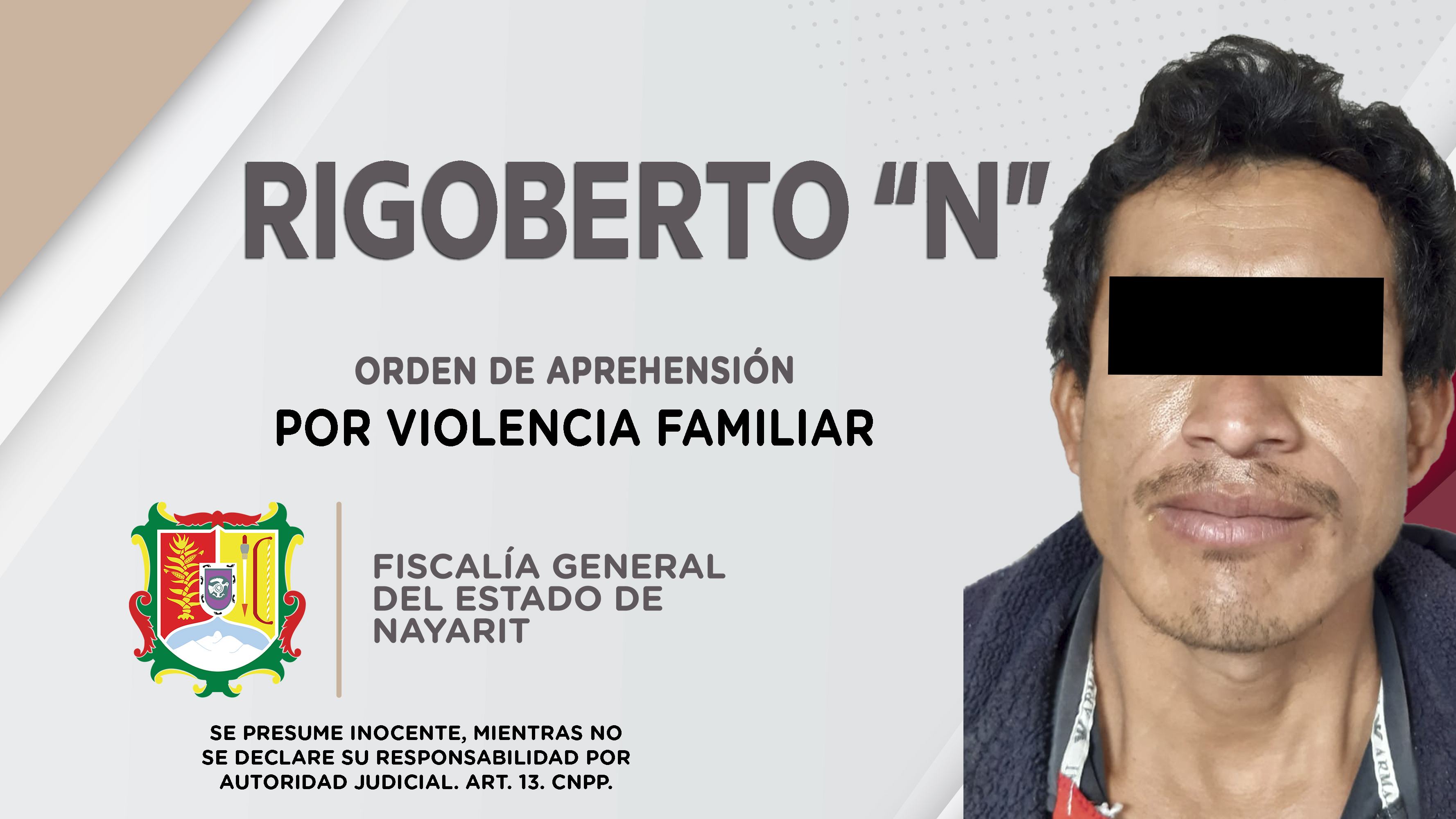 Personal de la Agencia de Investigación Criminal de Nayarit dio cumplimiento a una orden de aprehensión que se obsequió contra Rigoberto “N”, por su probable responsabilidad penal en hechos ...