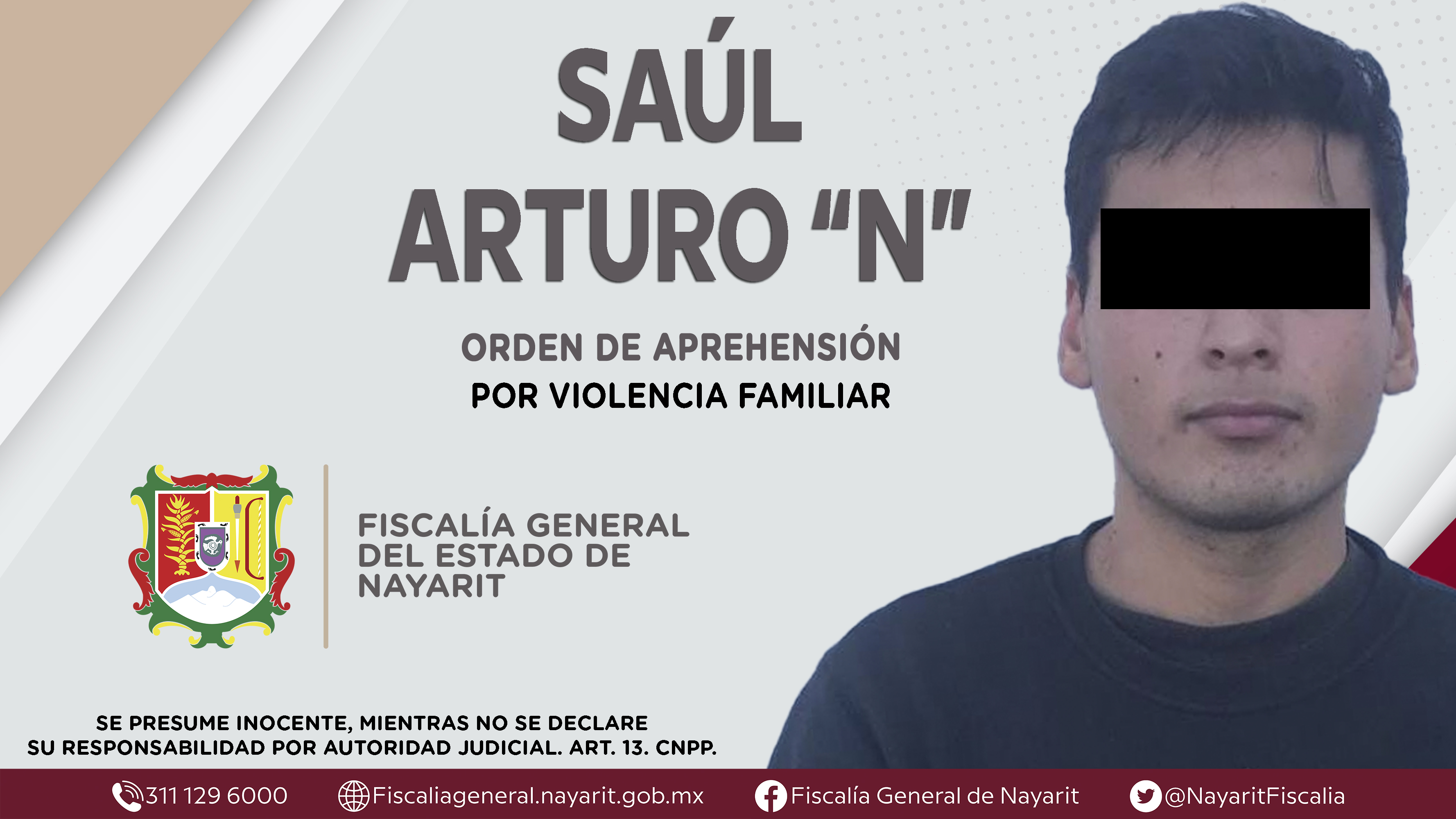 La Fiscalía General del Estado a través de la Agencia de Investigación Criminal cumplimentó una orden de aprehensión en la ciudad de Tepic contra Saúl Arturo “N”, por su presunta participación en hechos que según apreciación de la ley encuad...