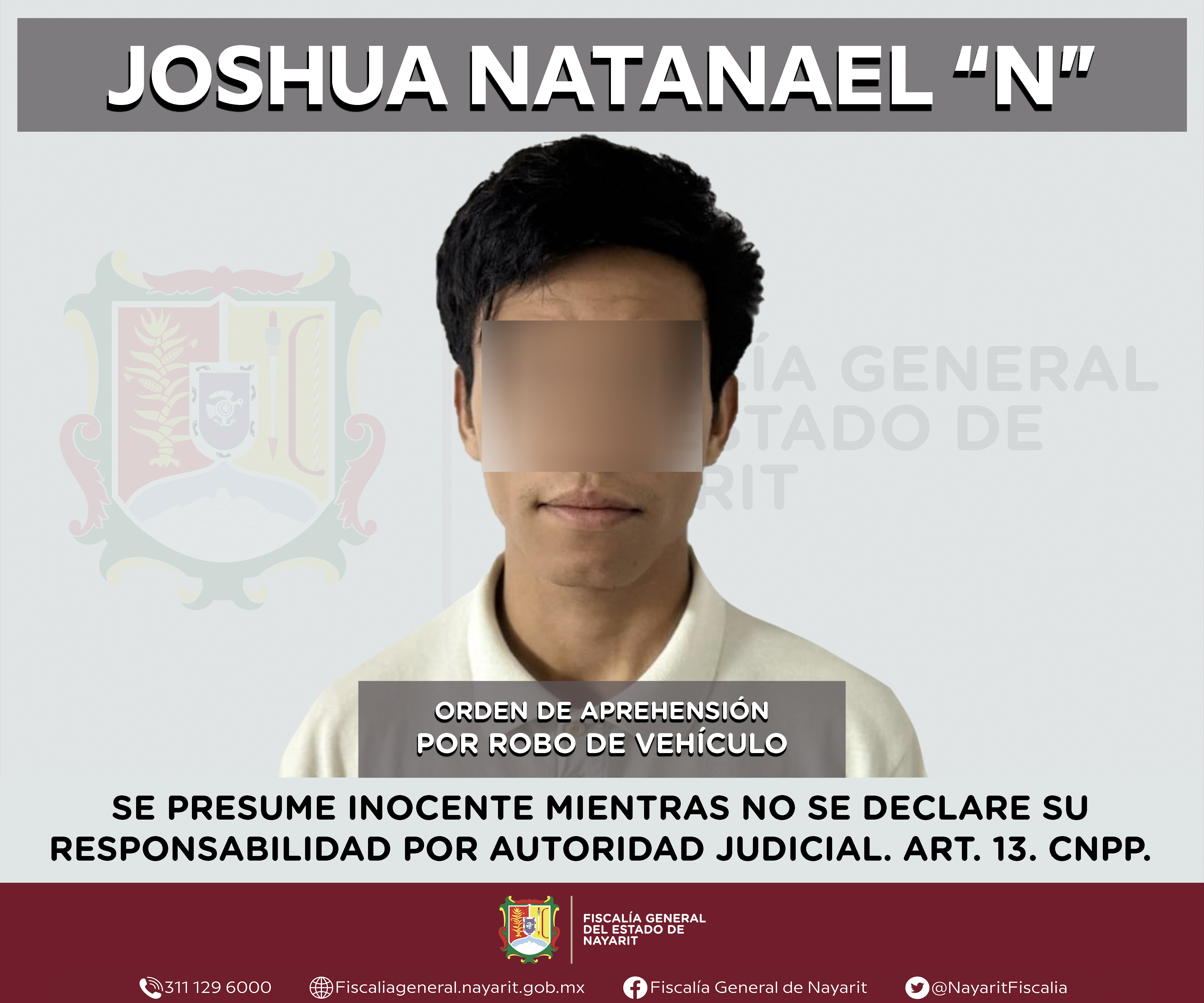 La Fiscalía General de Nayarit a través de la Agencia de Investigación Criminal ejecutó una orden de aprehensión en la capital nayarita contra Joshua Natanael “N”, por su probable participación en hechos que para la ley configuran el delito de ...