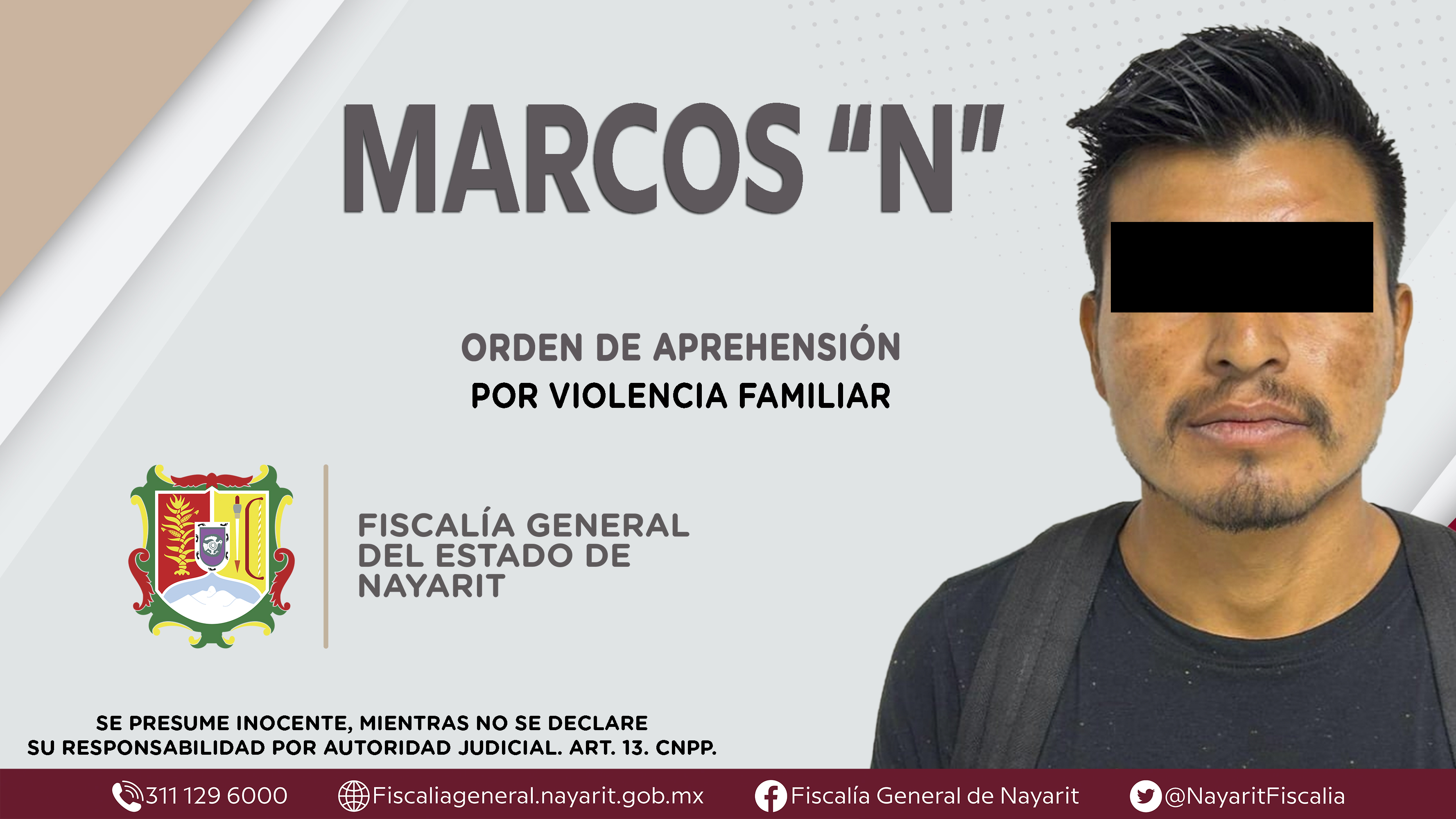 La Fiscalía General del Estado a través de la Agencia de Investigación Criminal cumplimentó una orden de aprehensión en la ciudad de Tepic contra Marcos “N”, por su presunta participación en hechos que según apreciación de la ley encuadran el...