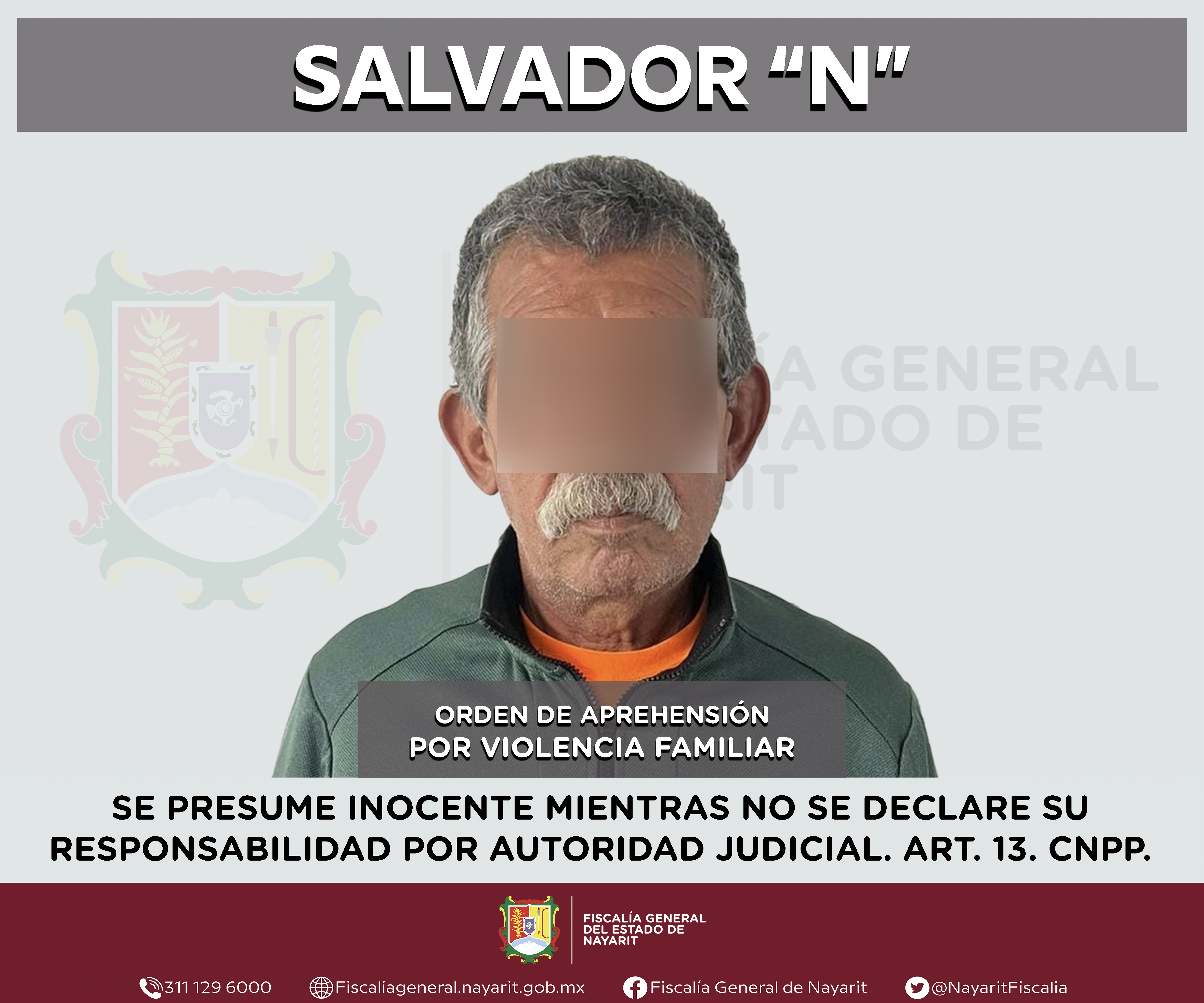 La Fiscalía General de Nayarit a través de la Agencia de Investigación Criminal ejecutó una orden de aprehensión en la capital nayarita contra Salvador “N”, por su probable participación en hechos que para la ley configuran el delito de violenc...
