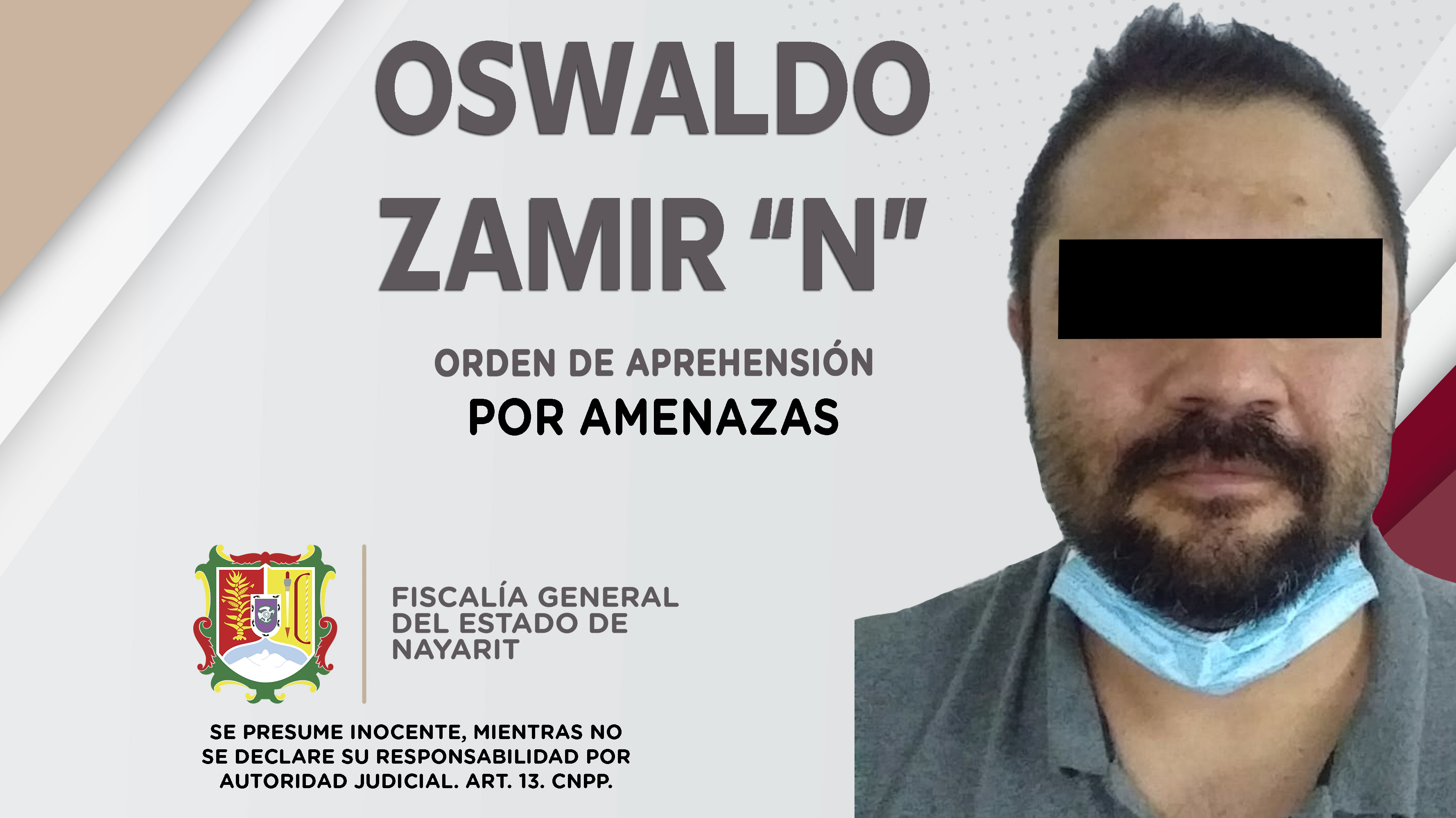 Elementos de la Agencia de Investigación Criminal de Nayarit cumplimentaron una orden de aprehensión contra Oswaldo Zamir “N”, por su probable responsabilidad penal en hechos que la ley señala como delito de amenazas, cometido en agravio de una pe...
