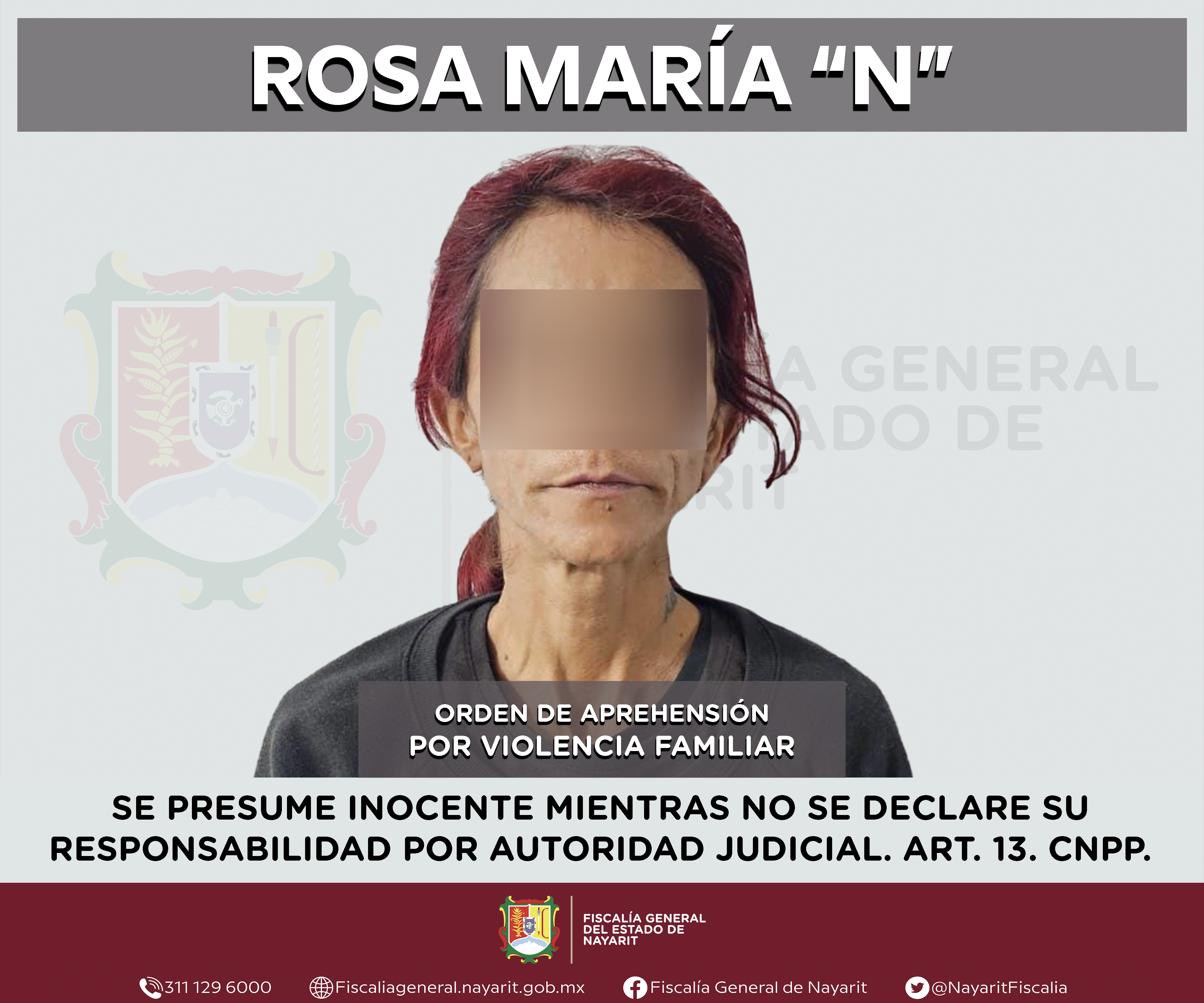 Elementos de la Agencia de Investigación Criminal de Nayarit ejecutaron una orden de aprehensión en la ciudad de Tepic contra Rosa María “N”, por su presunta participación en hechos que según apreciación de la ley configuran el delito de violen...