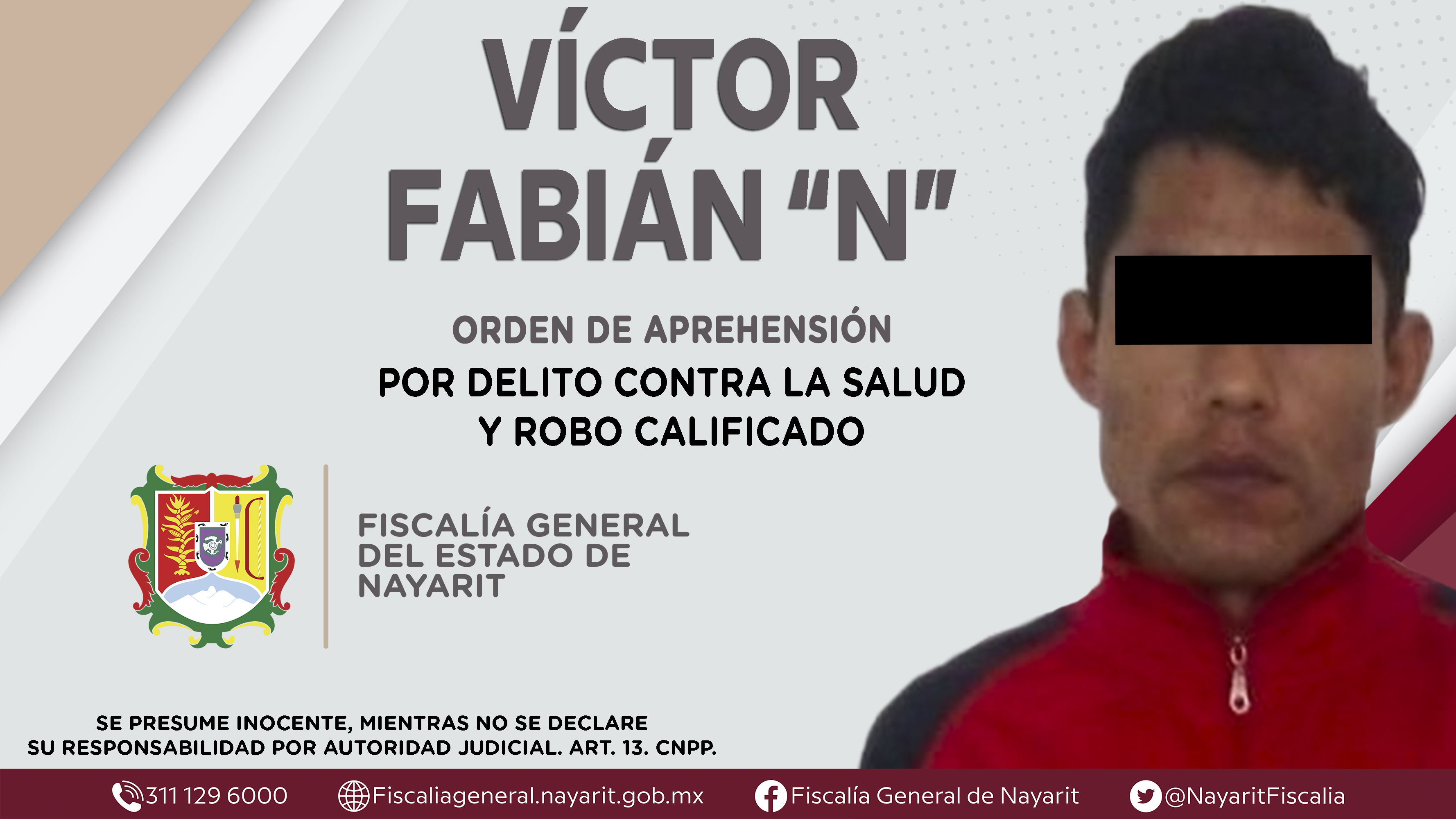 La Fiscalía General del Estado a través de la Agencia de Investigación Criminal cumplimentó tres órdenes de aprehensión en la capital nayarita contra Víctor Fabián “N”, las dos primeras por su presunta participación en hechos que bajo la ap...