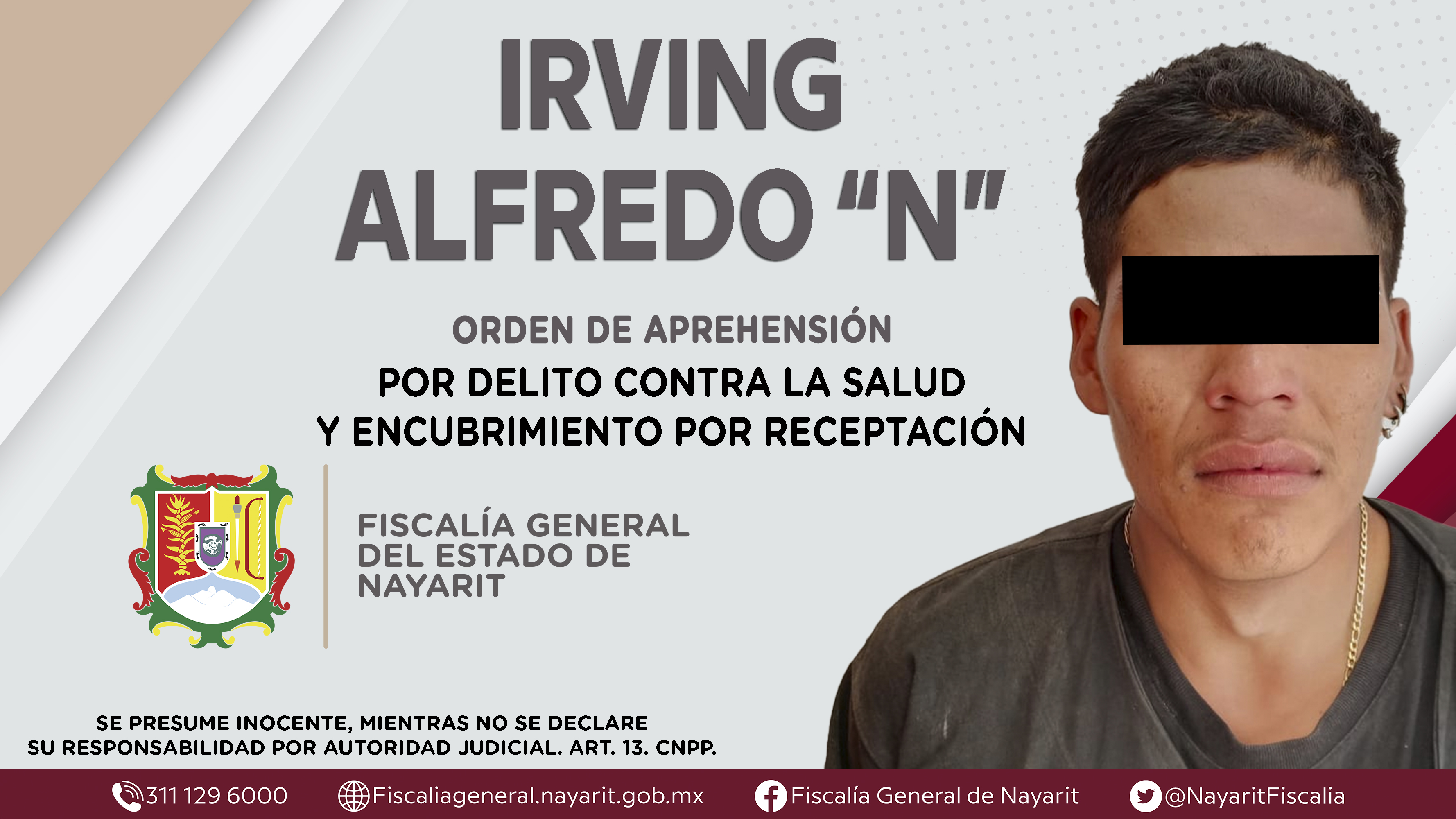 La Fiscalía General del Estado a través de la Agencia de Investigación Criminal dio cumplimiento a dos órdenes de aprehensión en la ciudad de Tepic contra Irving Alfredo “N”, la primera por su presunta participación en hechos que bajo la apreci...