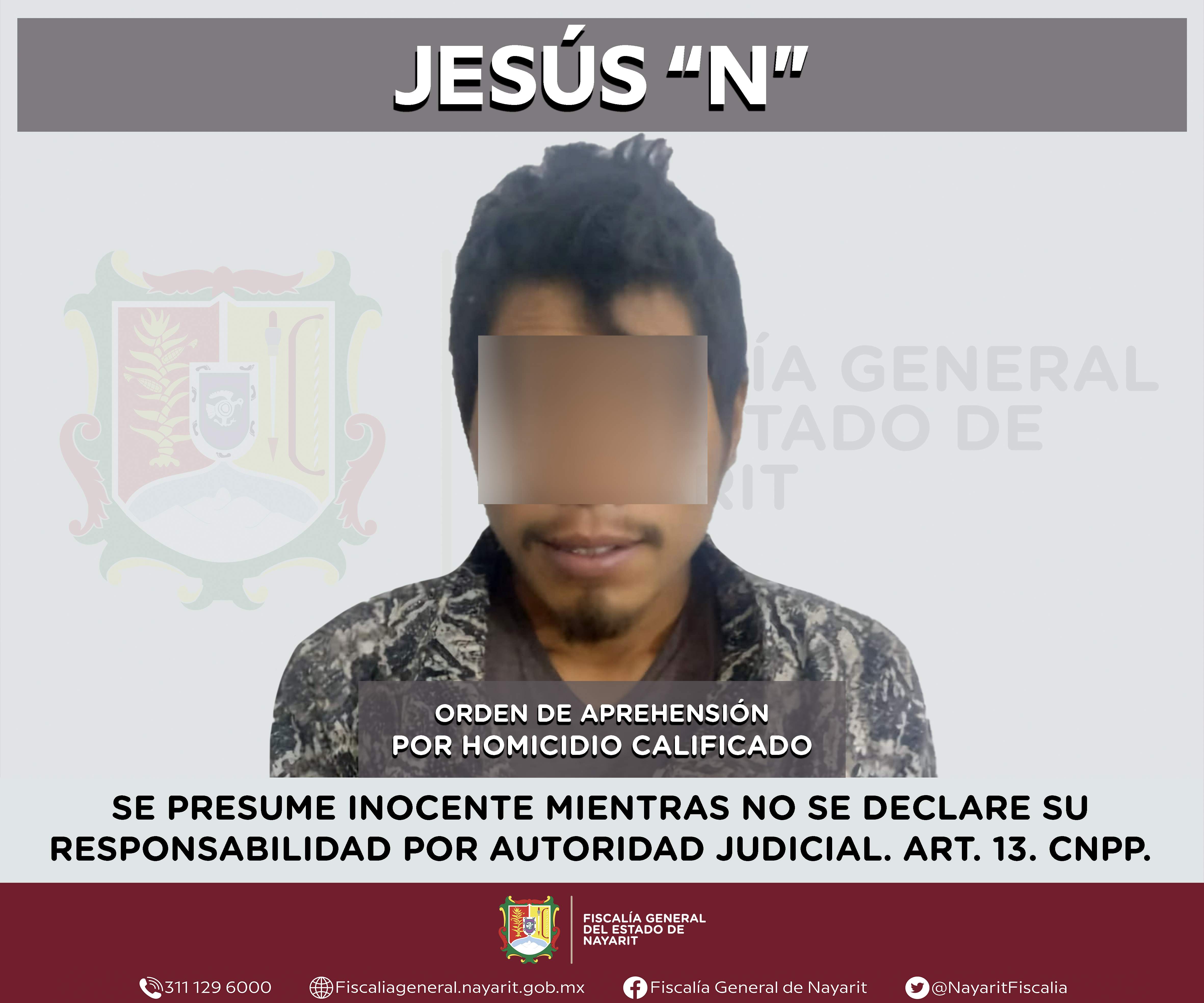 La Fiscalía General de Nayarit a través de la Agencia de Investigación Criminal ejecutó una orden de aprehensión en el municipio de Ruiz contra Jesús “N”, por su probable participación en hechos que para la ley configuran el delito de homicidi...