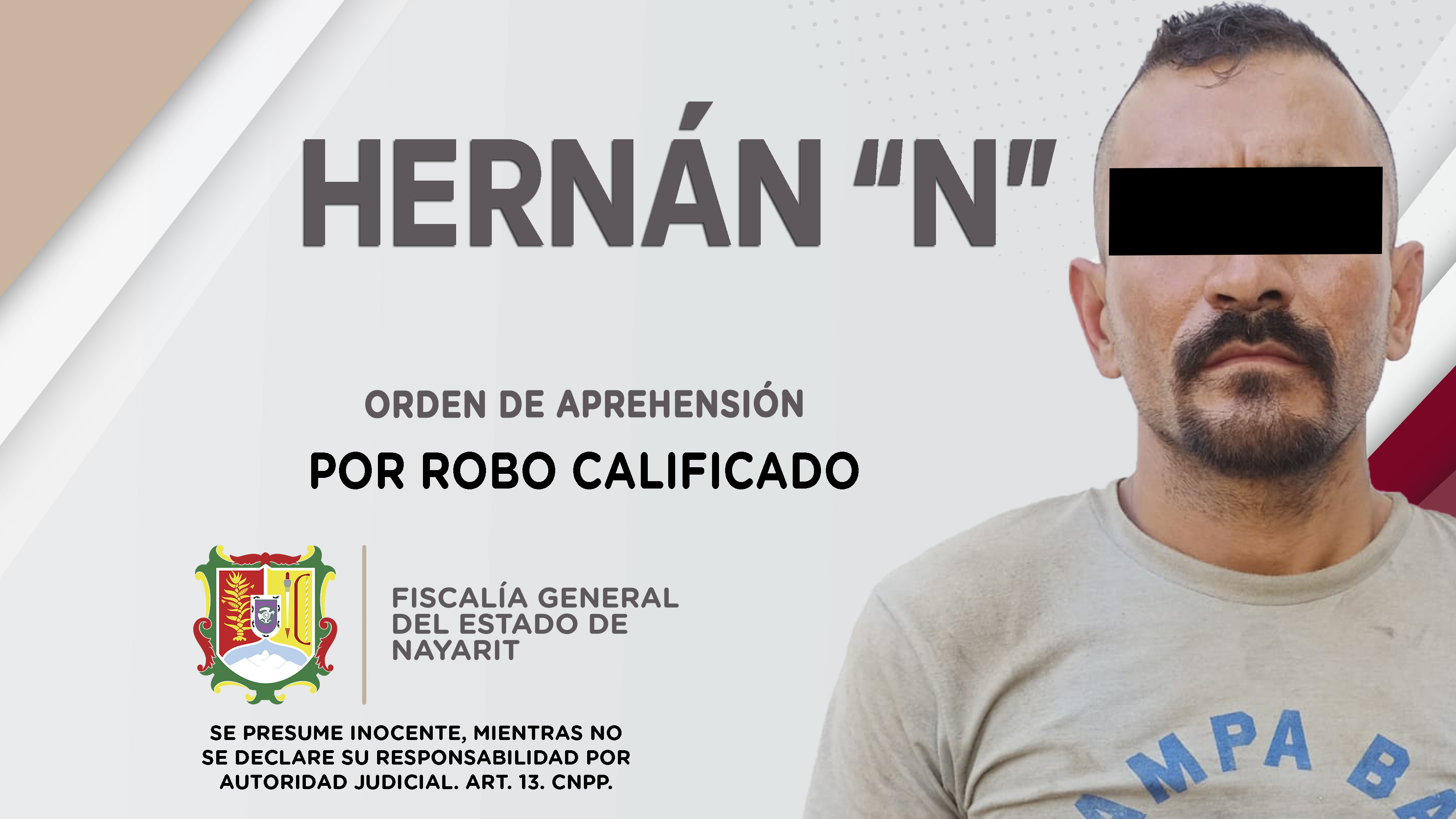 Personal de la Agencia de Investigación Criminal de Nayarit ejecutó una orden de aprehensión contra Hernán “N”, en el poblado San Vicente, municipio de Bahía de Banderas, por su tentativa responsabilidad penal en hechos que para la ley constituy...