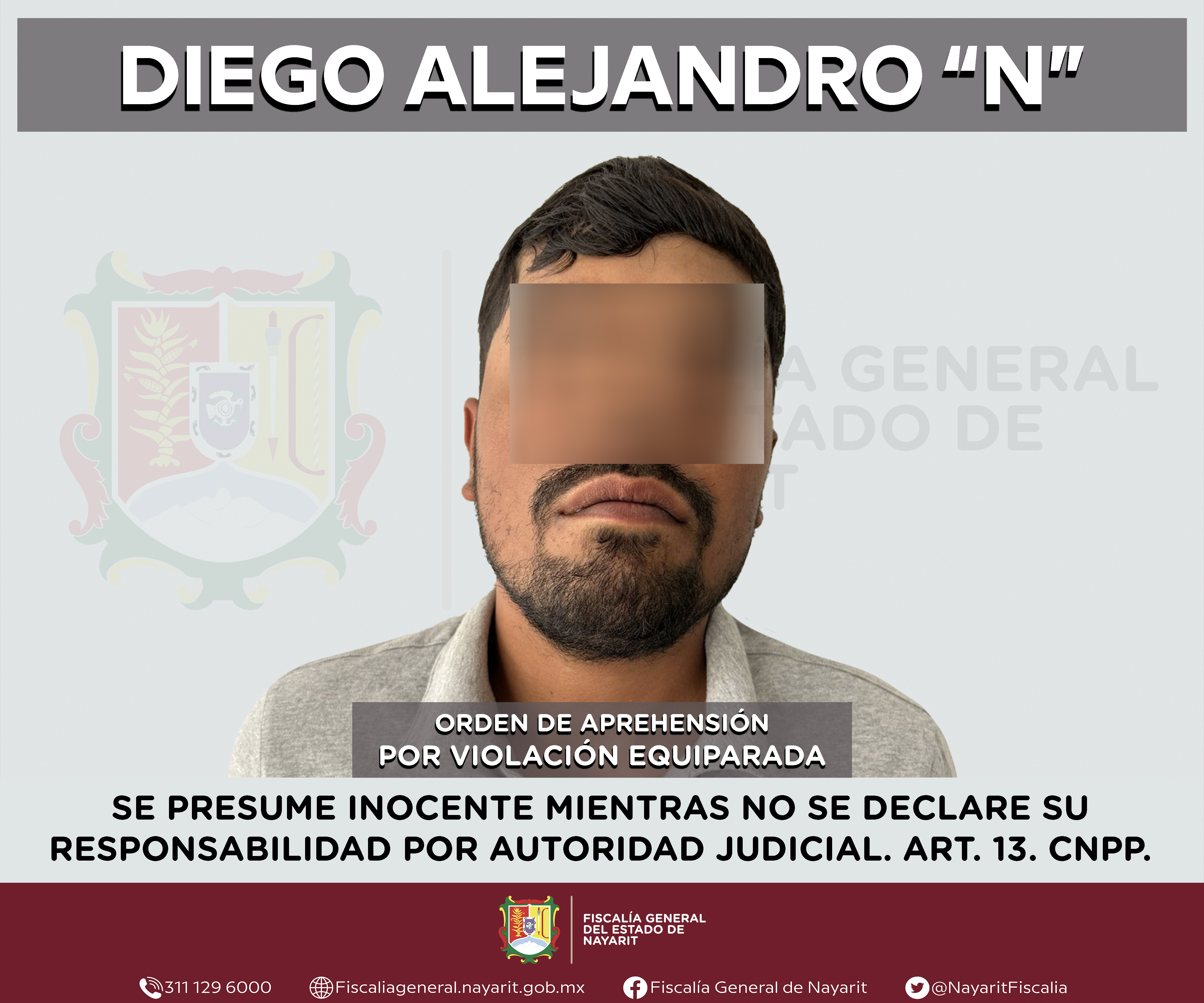Elementos de la Agencia de Investigación Criminal de Nayarit ejecutaron una orden de aprehensión en la localidad Santa Cruz de Camotlán, municipio de Ahuacatlán contra Diego Alejandro “N”, por su presunta participación en hechos que según aprec...