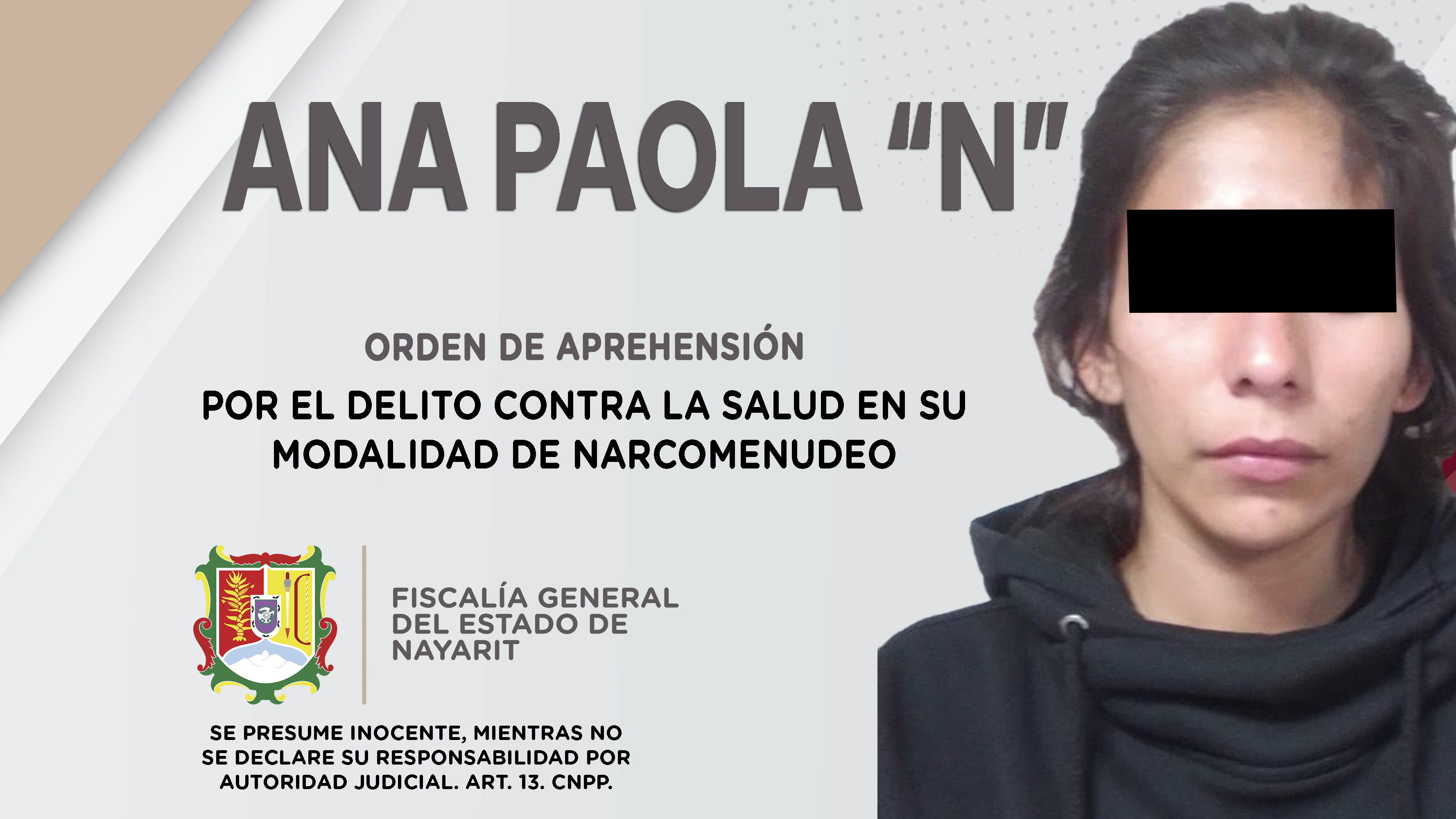 Personal de la Agencia de Investigación Criminal de Nayarit ejecutó una orden de reaprehensión contra Ana Paola “N”, por su tentativa responsabilidad penal en hechos que para la ley configuran el delito contra la salud en su modalidad de narcomenu...