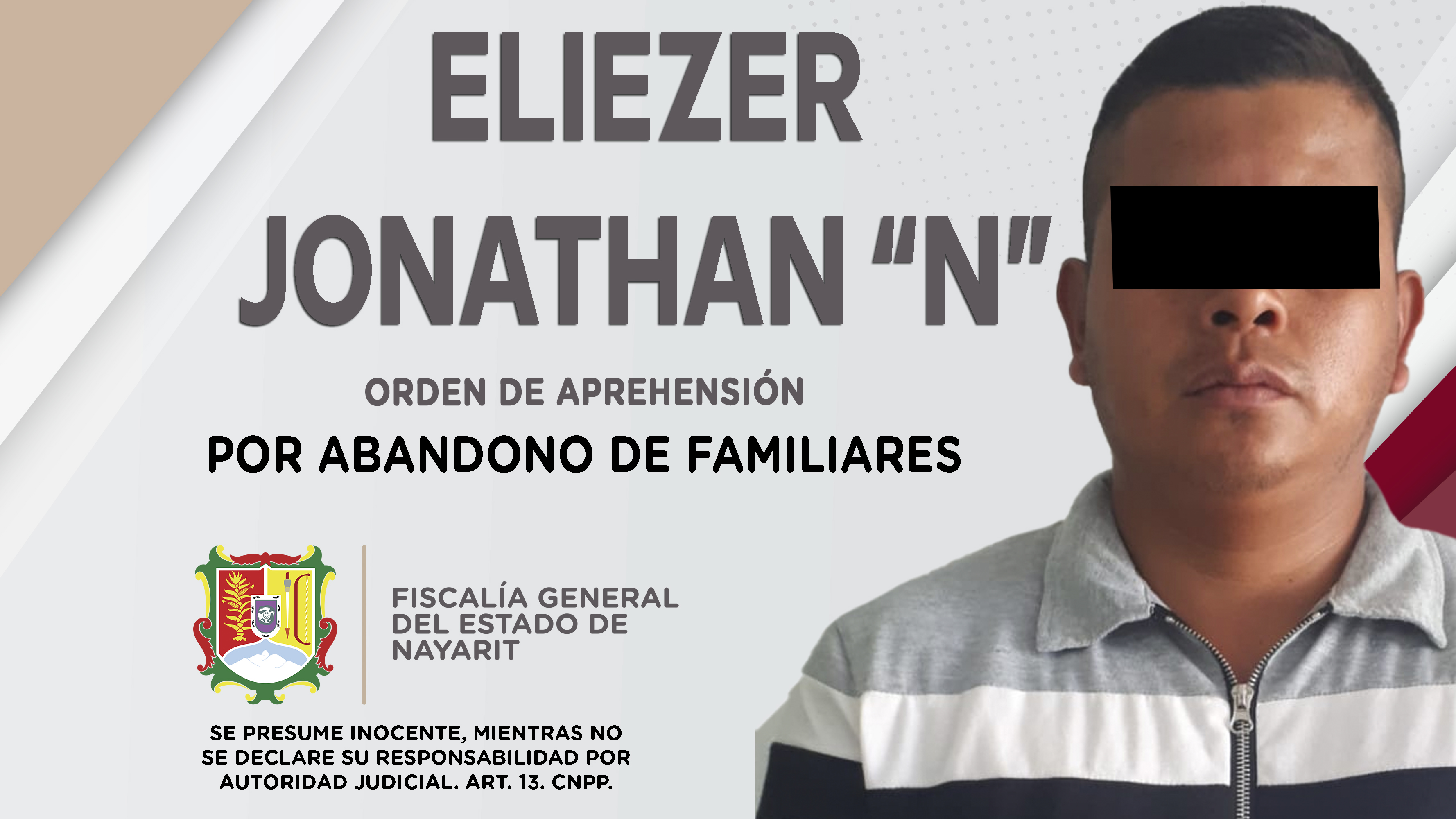 En el poblado El Ahuacate, municipio de Tepic, elementos de la Agencia de Investigación Criminal ejecutaron una orden de aprehensión contra Eliezer Jonathan “N”, por su presunta responsabilidad penal en hechos que la ley señala como delito de aban...