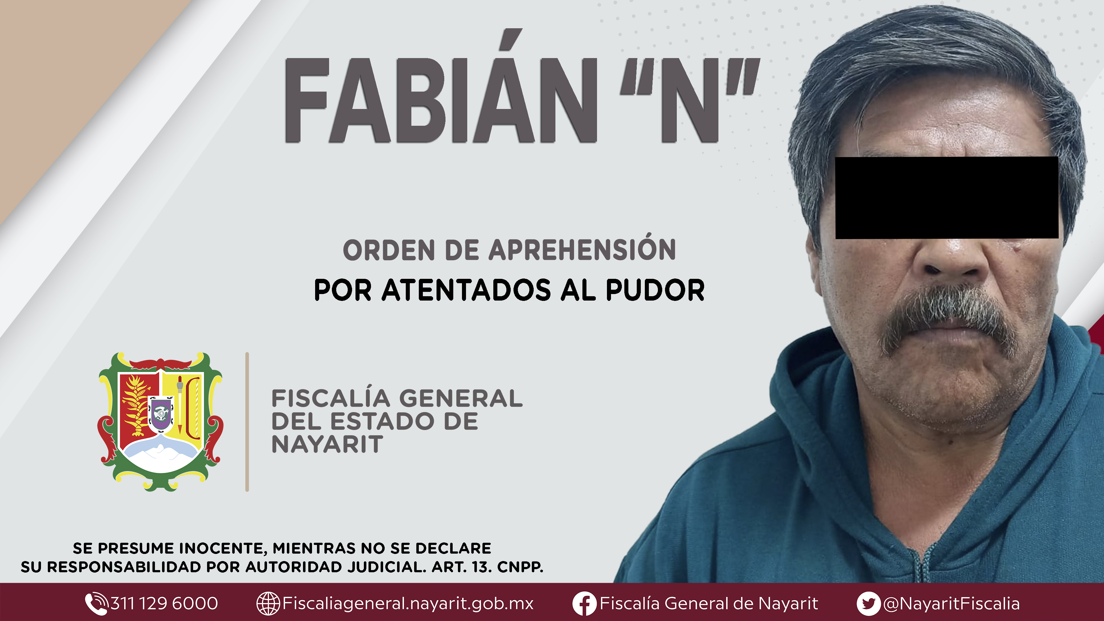 La Fiscalía General del Estado a través de la Agencia de Investigación Criminal cumplimentó una orden de aprehensión en la capital nayarita contra Fabián “N”, por su presunta participación en hechos que bajo la apreciación de la ley configur...