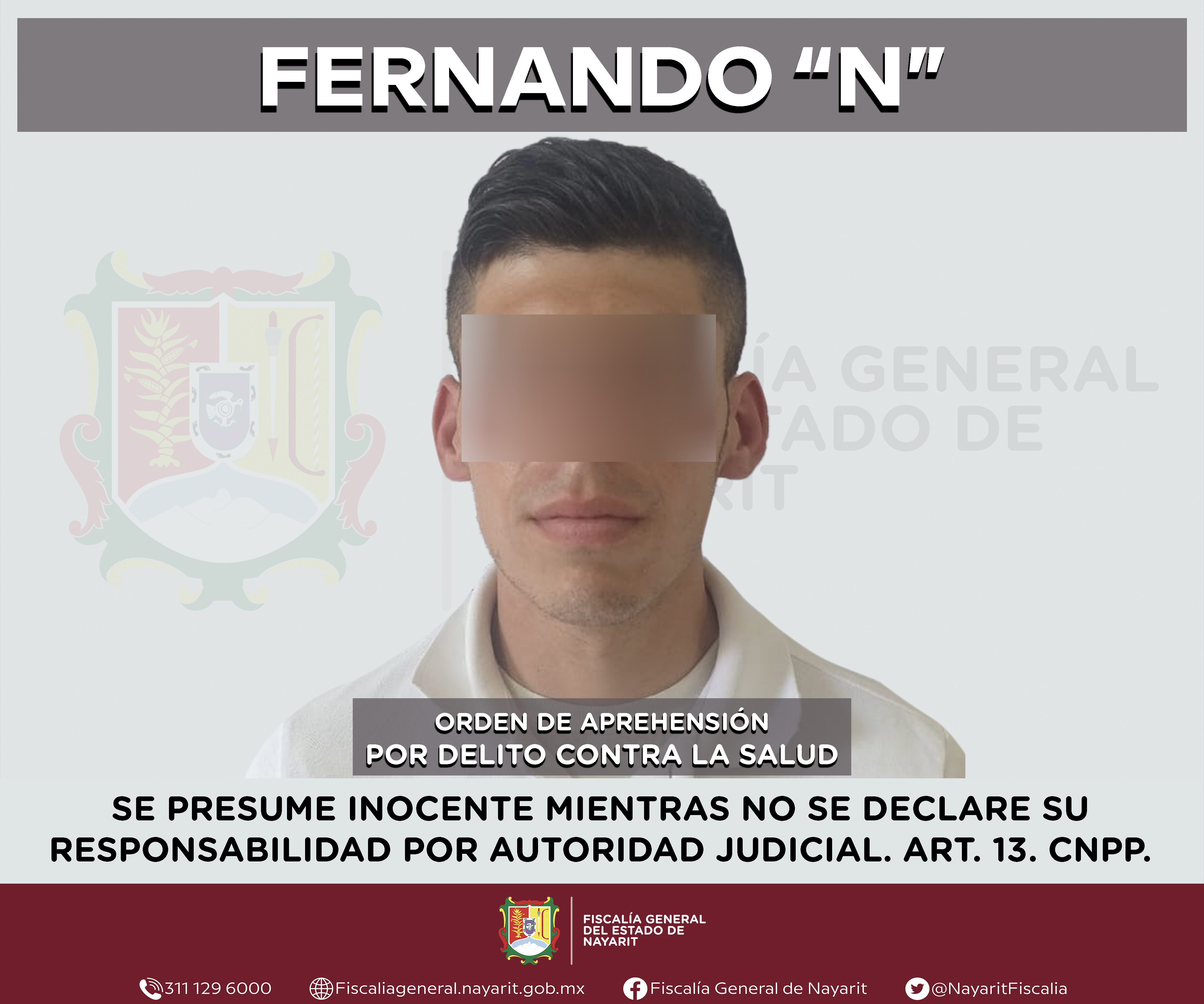 Elementos de la Agencia de Investigación Criminal de Nayarit ejecutaron una orden de aprehensión en la capital nayarita contra Fernando “N”, por su presunta participación en hechos que según apreciación de la ley configuran el delito contra la s...