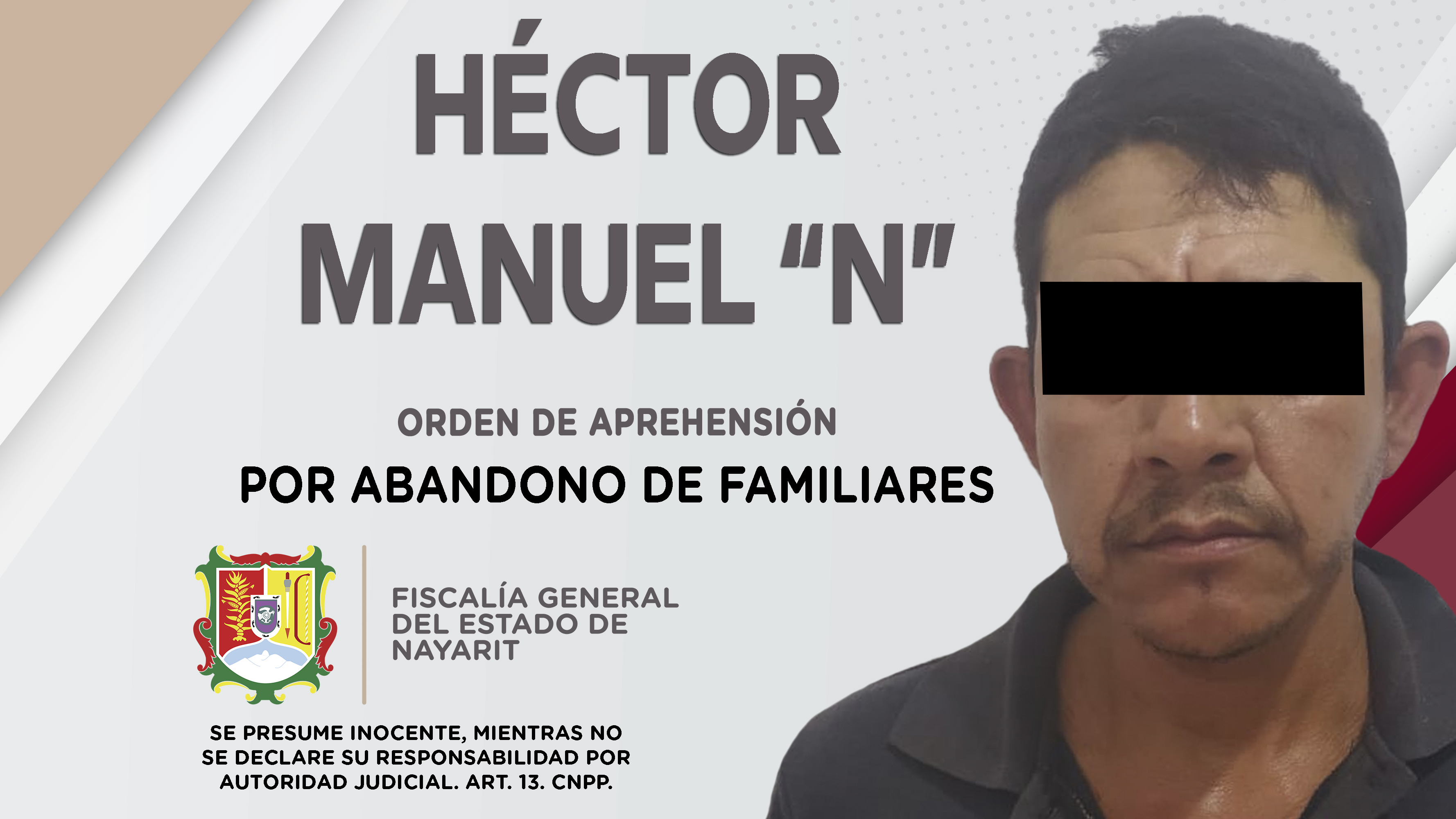 En el municipio de Tecuala, elementos de la Agencia de Investigación Criminal ejecutaron una orden de aprehensión contra Héctor Manuel “N”, por su presunta responsabilidad penal en hechos que la ley señala como delito de abandono de familiares.\r...