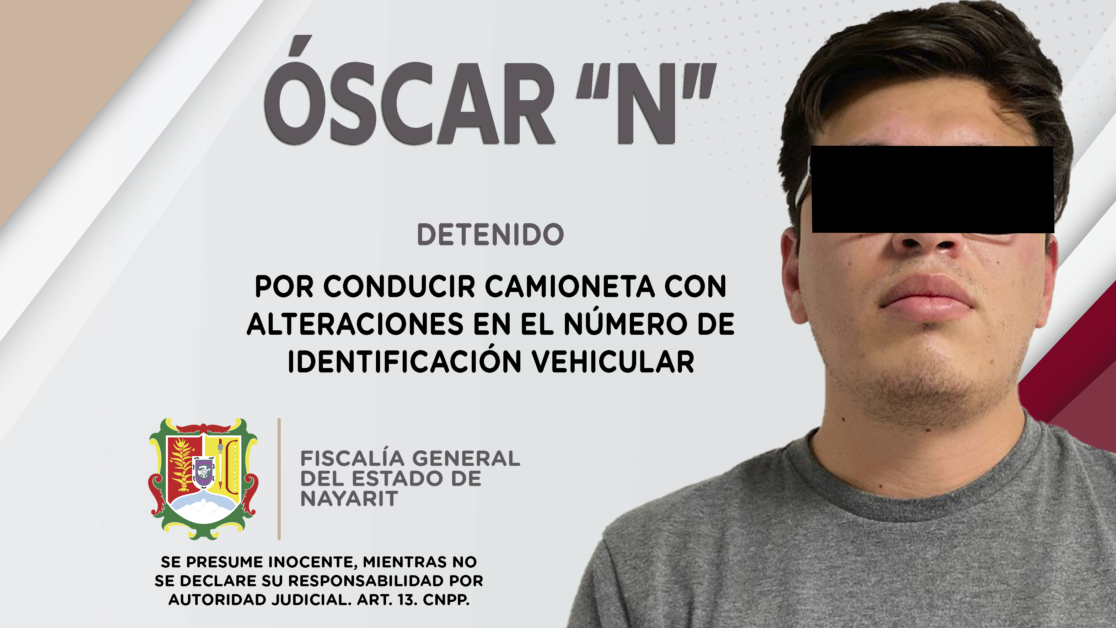 En el libramiento carretero a la altura de El Armadillo de esta ciudad de Tepic, elementos de la Comandancia de Robo de Vehículos detuvieron en flagrancia a Óscar “N”, por su probable responsabilidad penal en hechos que para la ley constituyen el d...