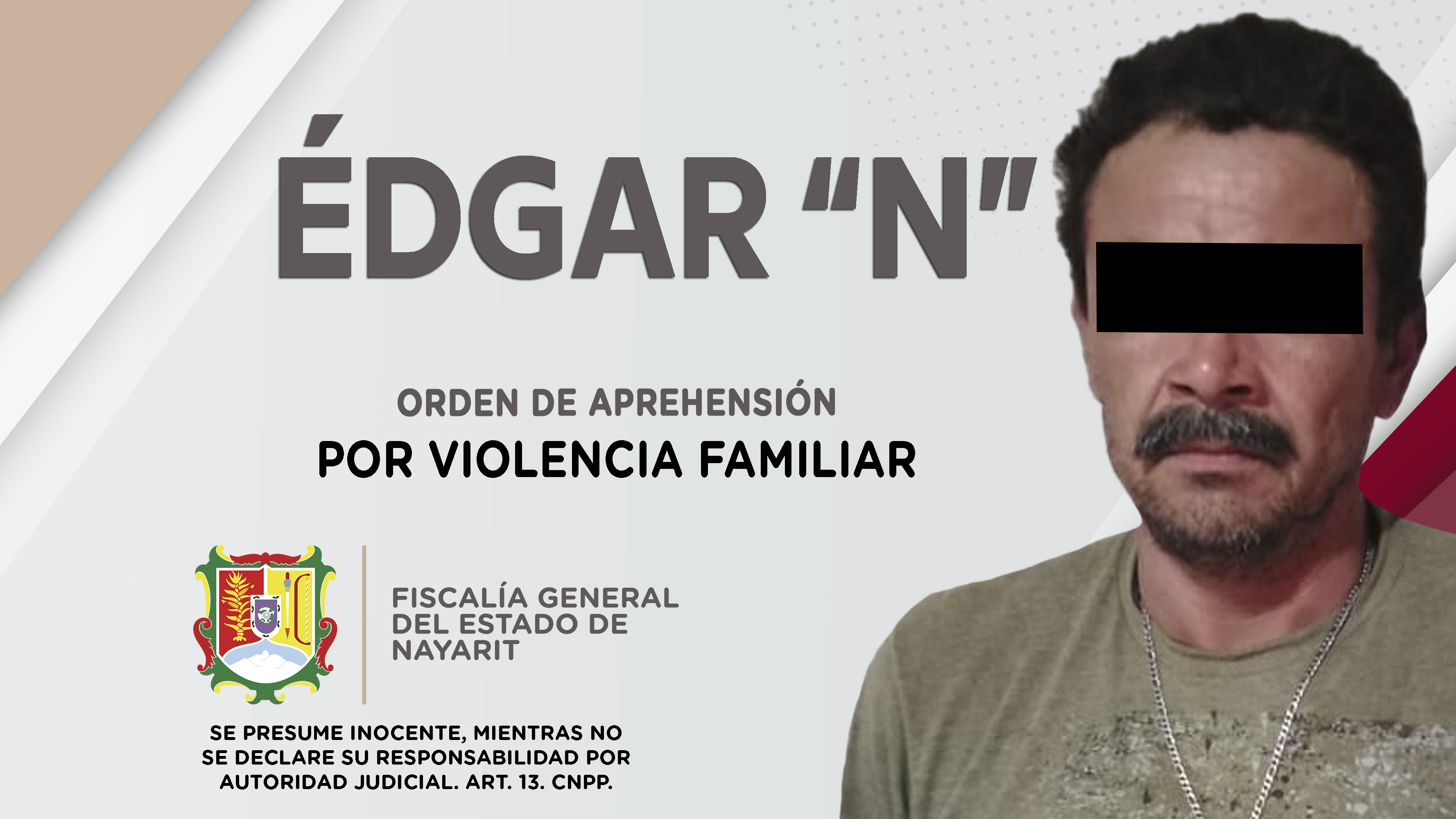 Elementos de la Agencia de Investigación Criminal ejecutaron una orden de aprehensión en el municipio de San Pedro Lagunillas, contra Édgar “N” porque presumiblemente es responsable de hechos que la ley valora como delito de violencia familiar, co...