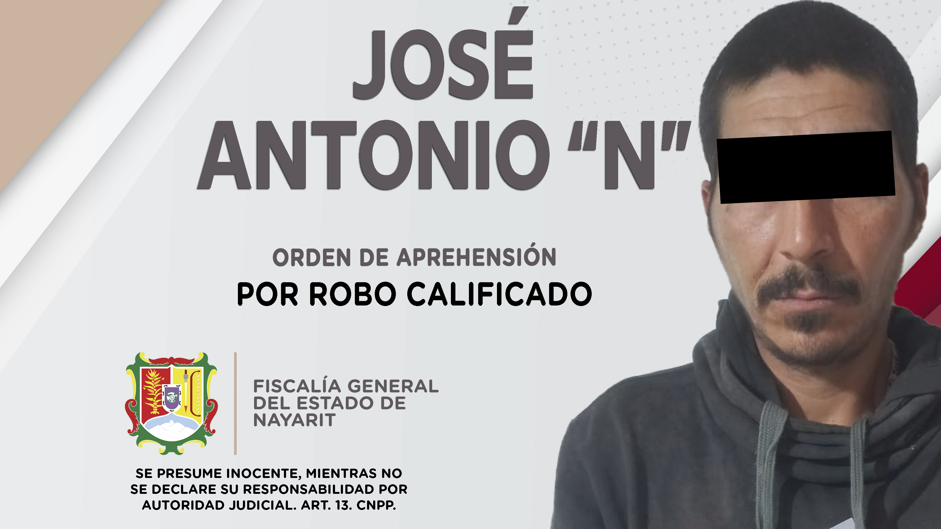 Elementos de la Agencia de Investigación Criminal ejecutaron una orden de aprehensión en el municipio de Amatlán de Cañas, contra José Antonio “N”, porque presumiblemente es responsable de hechos que la ley valora como delito de robo calificado,...