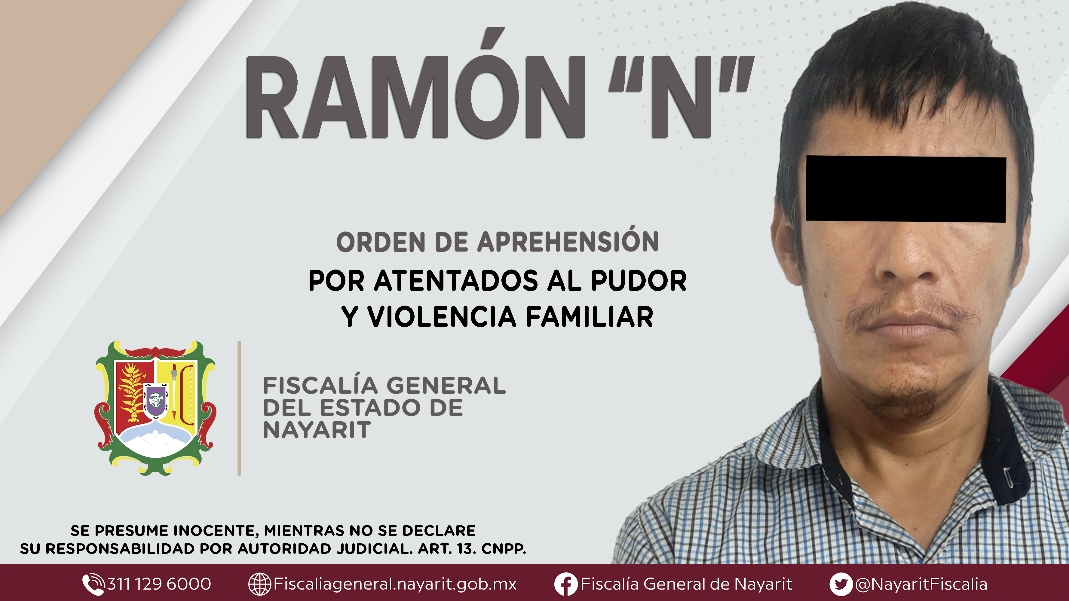 La Fiscalía General de Nayarit a través de la Agencia de Investigación Criminal dio cumplimiento a una orden de aprehensión en la ciudad de Tepic contra Ramón “N”, por su presunta participación en hechos que según apreciación de la ley encuad...