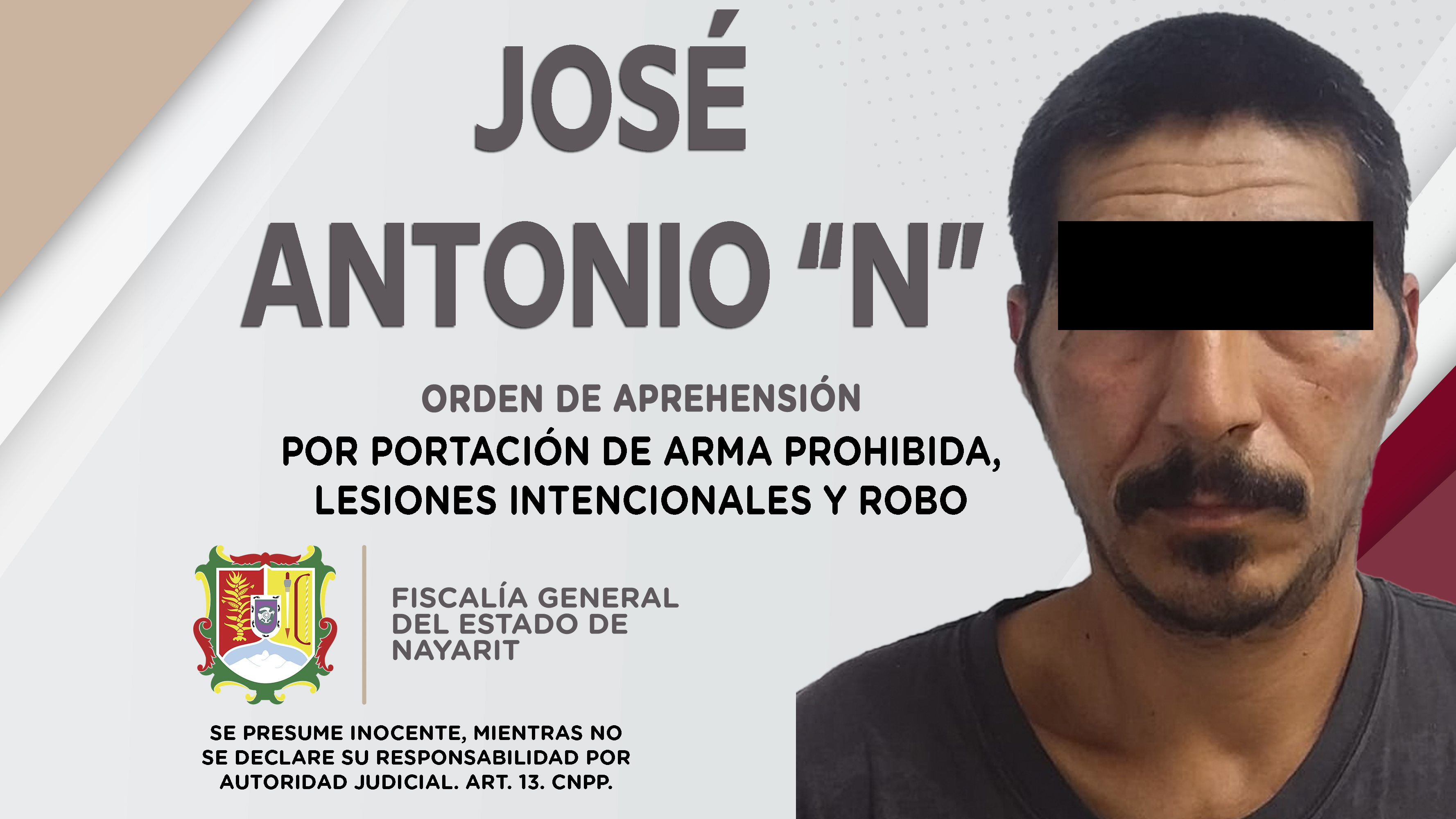 Fiscalía General de Nayarit a través de la Agencia de Investigación Criminal, dio cumplimiento a una orden de reaprehensión contra José Antonio “N”, por su probable responsabilidad penal en hechos que la ley señala como delitos de portación de...