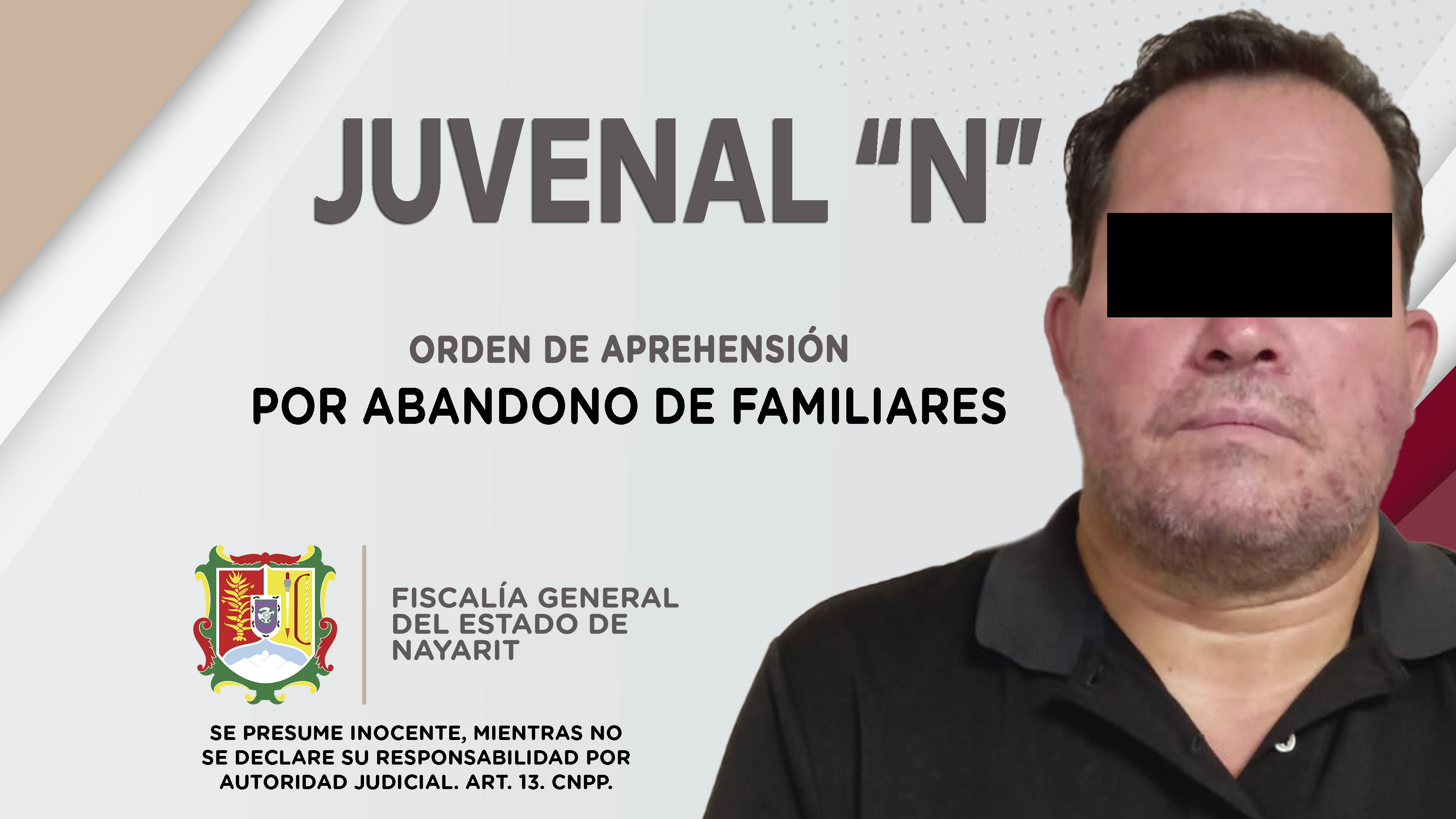 Elementos de la Agencia de Investigación Criminal ejecutaron una orden de aprehensión contra Juvenal “N”, porque presumiblemente es responsable de hechos que la ley valora como delito de abandono de familiares, cometido en agravio de tres menores d...