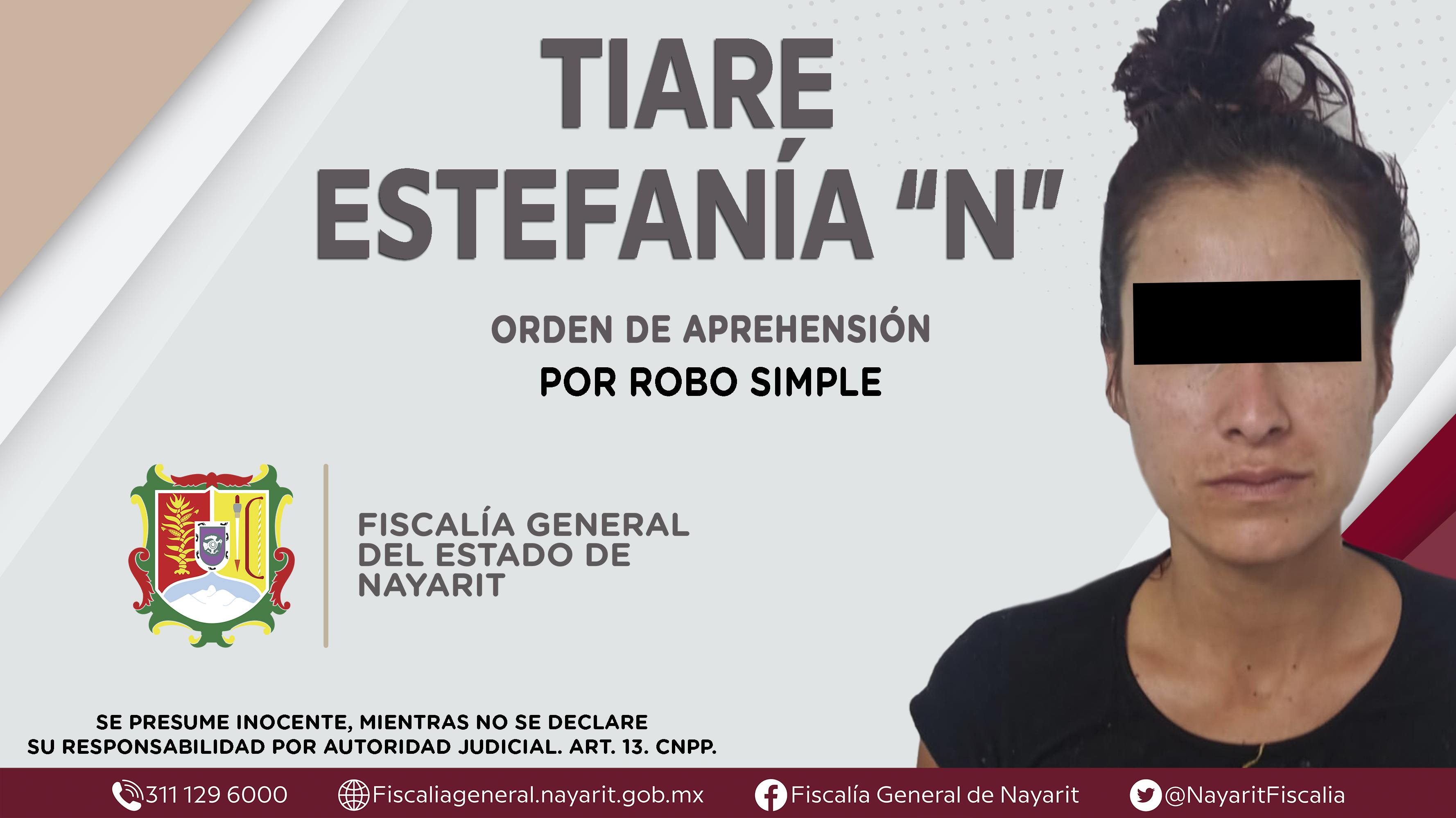 La Fiscalía General de Nayarit a través de la Agencia de Investigación Criminal dio cumplimiento a una orden de aprehensión en la capital nayarita contra Tiare Estefanía “N”, por su presunta participación en hechos que según apreciación de la...