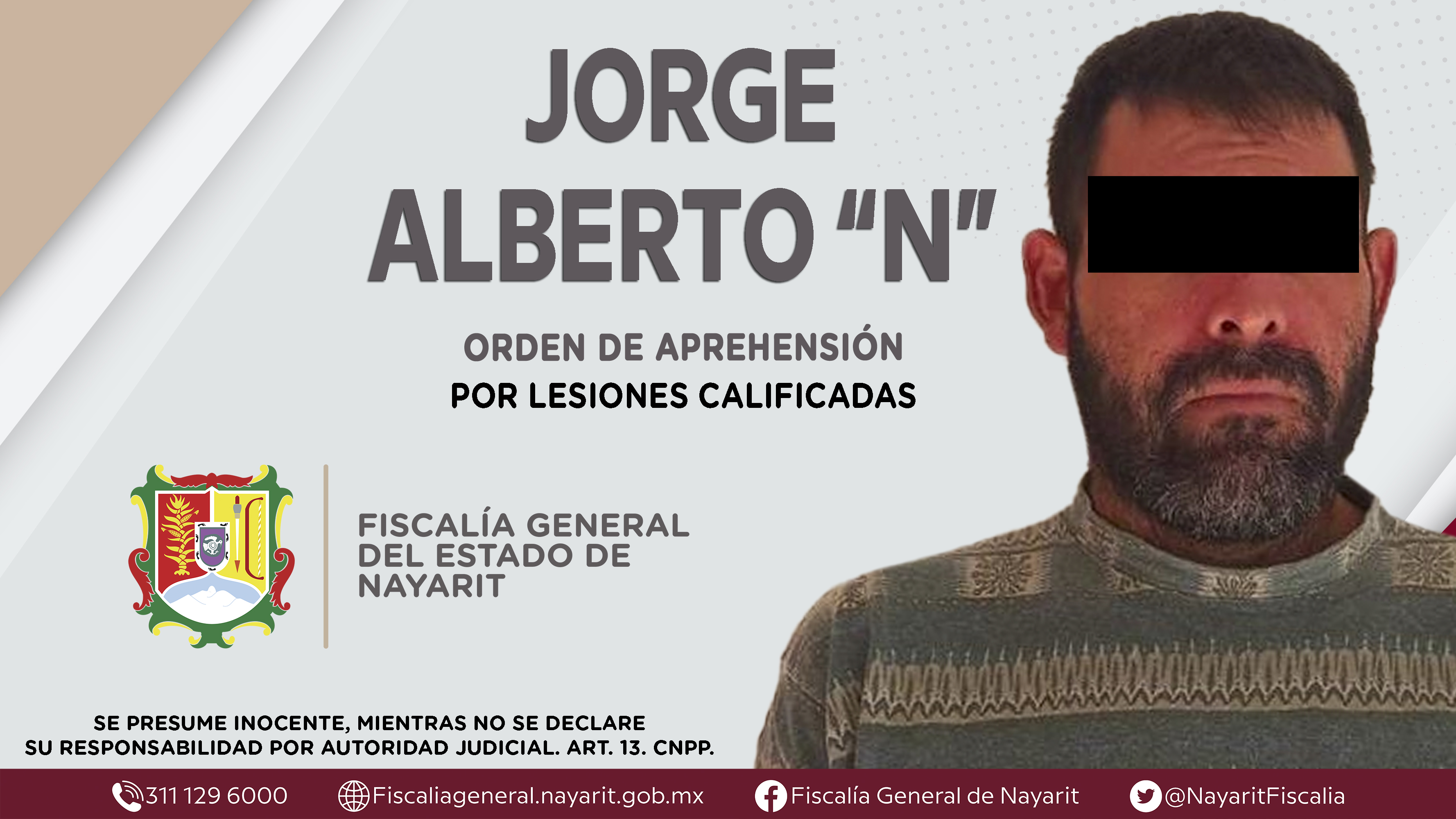La Fiscalía General de Nayarit a través de la Agencia de Investigación Criminal ejecutó una orden de aprehensión en la ciudad de Tepic contra Jorge Alberto “N”, por su presunta participación en hechos que según apreciación de la ley encuadran...