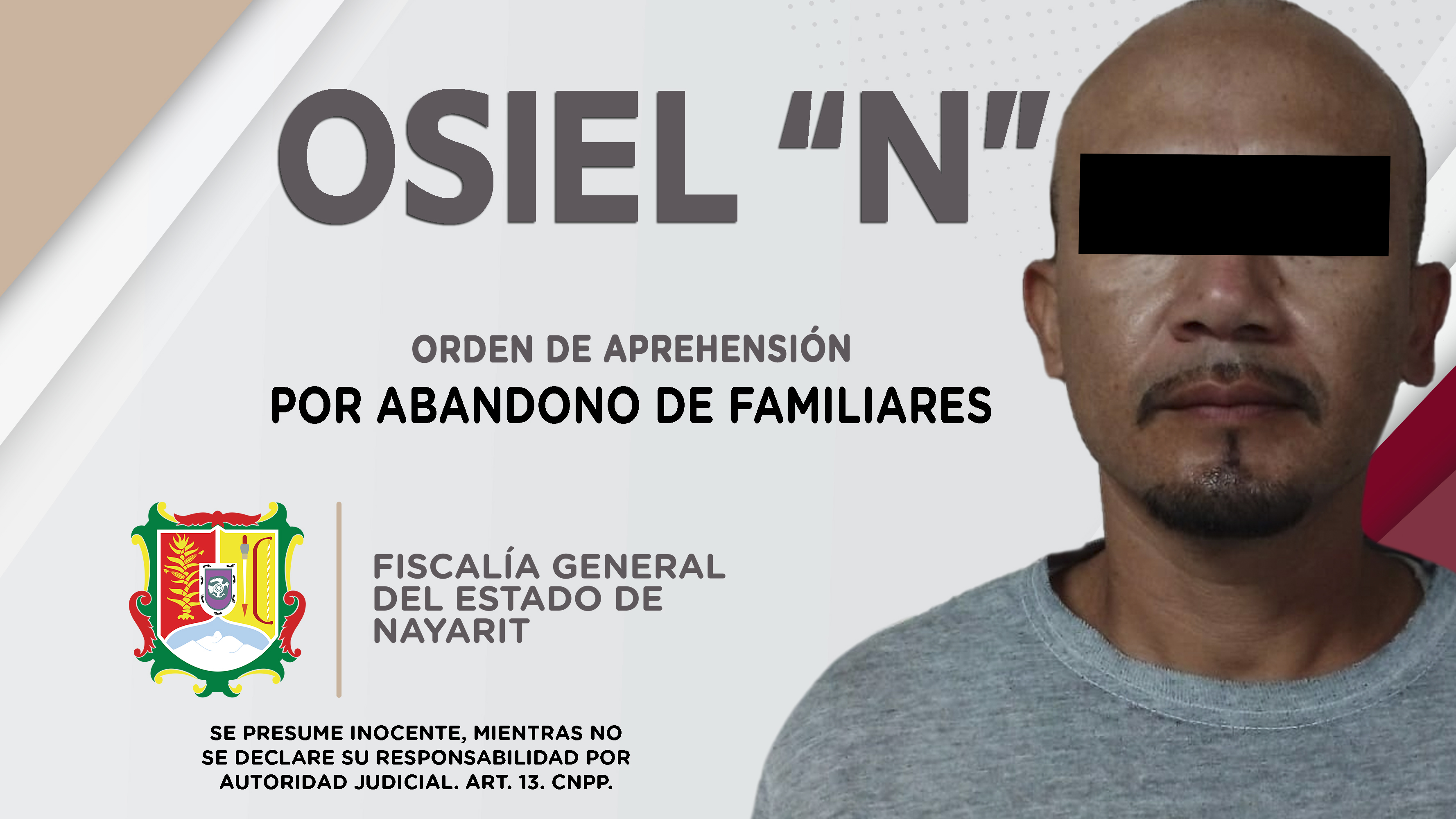 Fiscalía General de Nayarit a través de la Agencia de Investigación Criminal, dio cumplimiento a una orden de aprehensión contra Osiel Abelardo “N”, por su probable responsabilidad penal en hechos que la ley señala como delito de abandono de fam...