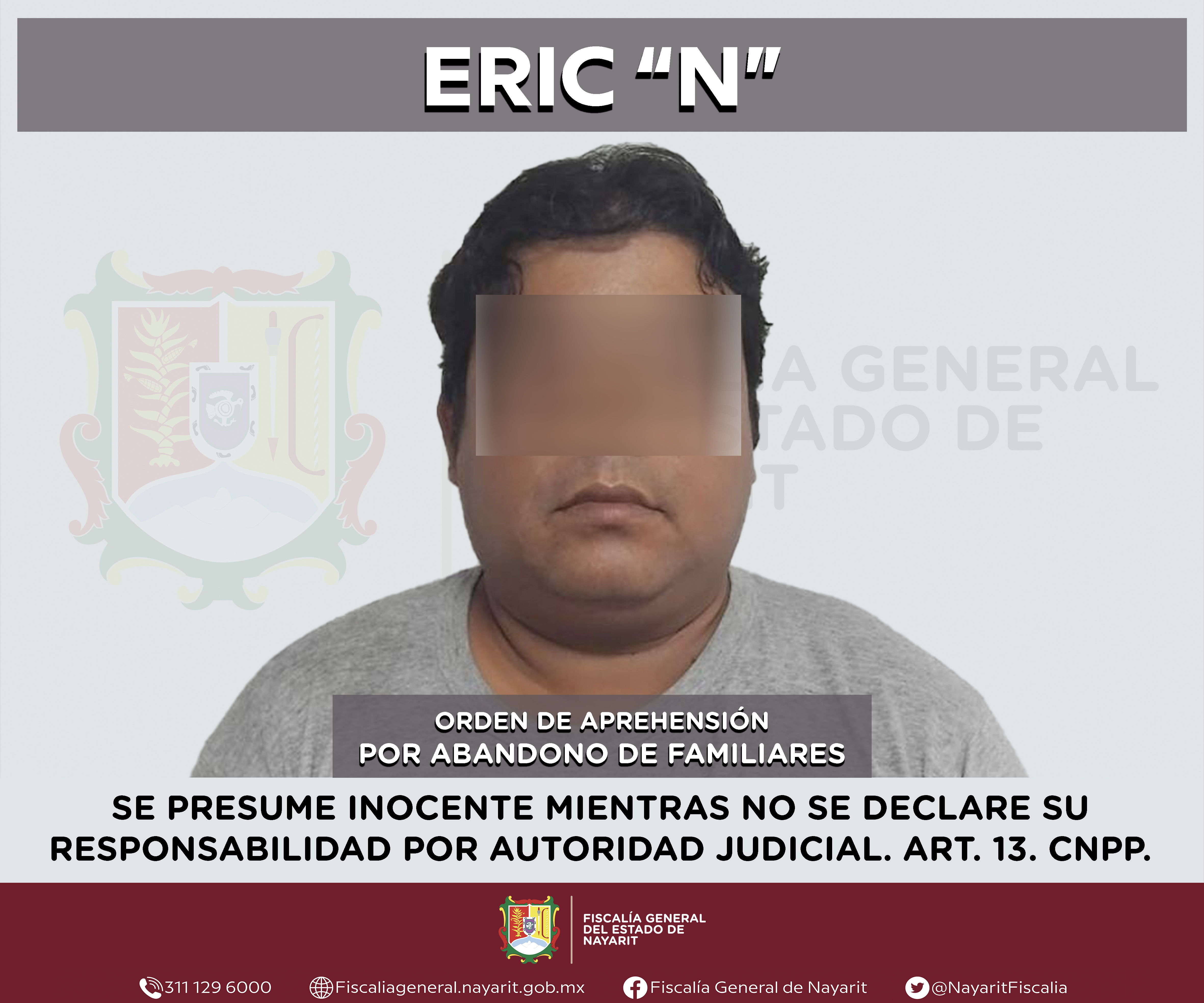 La Fiscalía General de Nayarit a través de la Agencia de Investigación Criminal ejecutó una orden de aprehensión en el municipio de San Blas contra Eric “N”, por su probable participación en hechos que para la ley configuran el delito de abando...