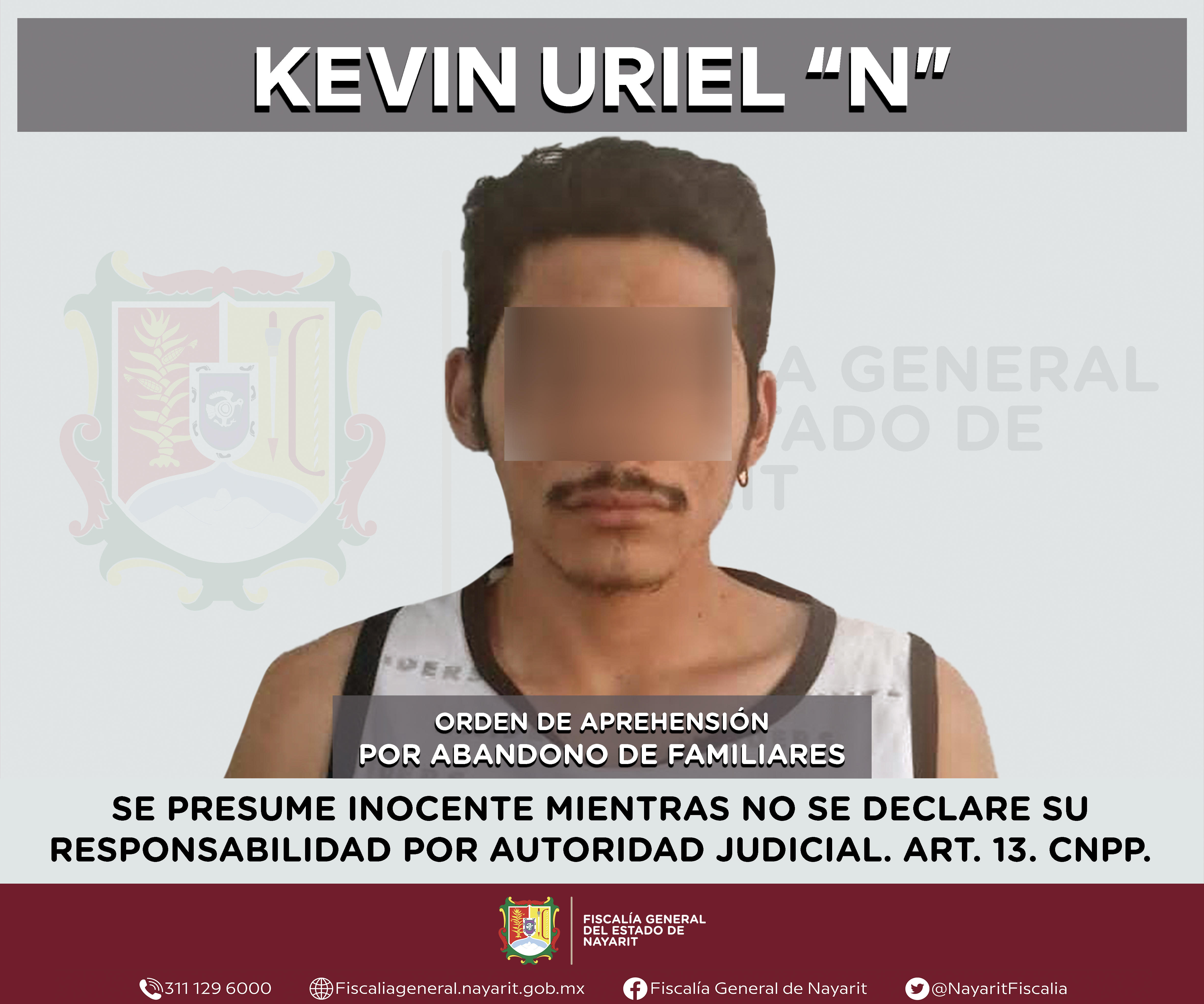 Elementos de la Agencia de Investigación Criminal de Nayarit ejecutaron una orden de aprehensión en la capital nayarita contra Kevin Uriel “N”, por su presunta participación en hechos que según apreciación de la ley encuadran el delito de abando...