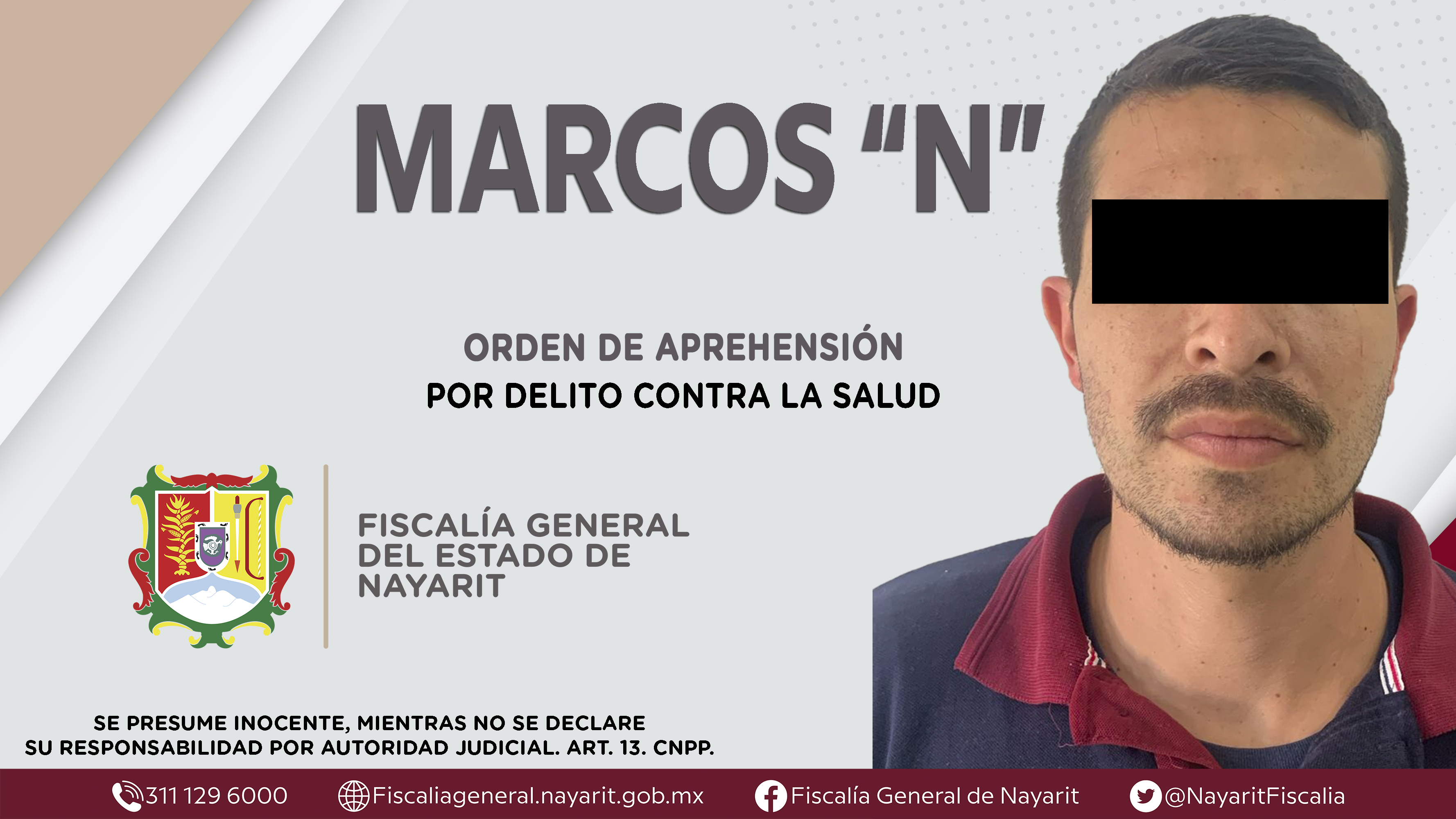 La Fiscalía General del Estado a través de la Agencia de Investigación Criminal cumplimentó una orden de aprehensión en la capital nayarita contra Marcos “N”, por su presunta participación en hechos que bajo apreciación de la ley configuran el...
