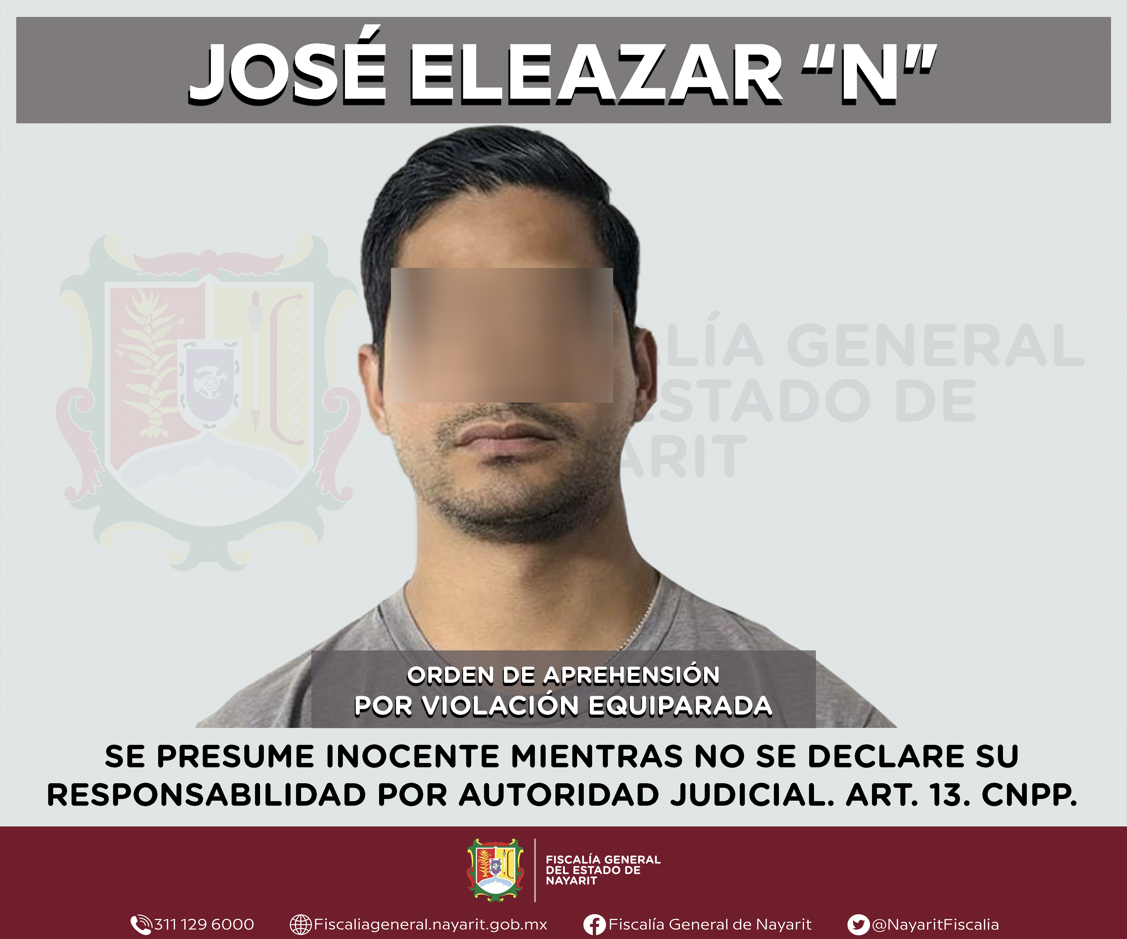 Elementos de la Agencia de Investigación Criminal de Nayarit ejecutaron una orden de aprehensión en la capital nayarita contra José Eleazar “N”, por su presunta participación en hechos que según apreciación de la ley encuadran el delito de viol...
