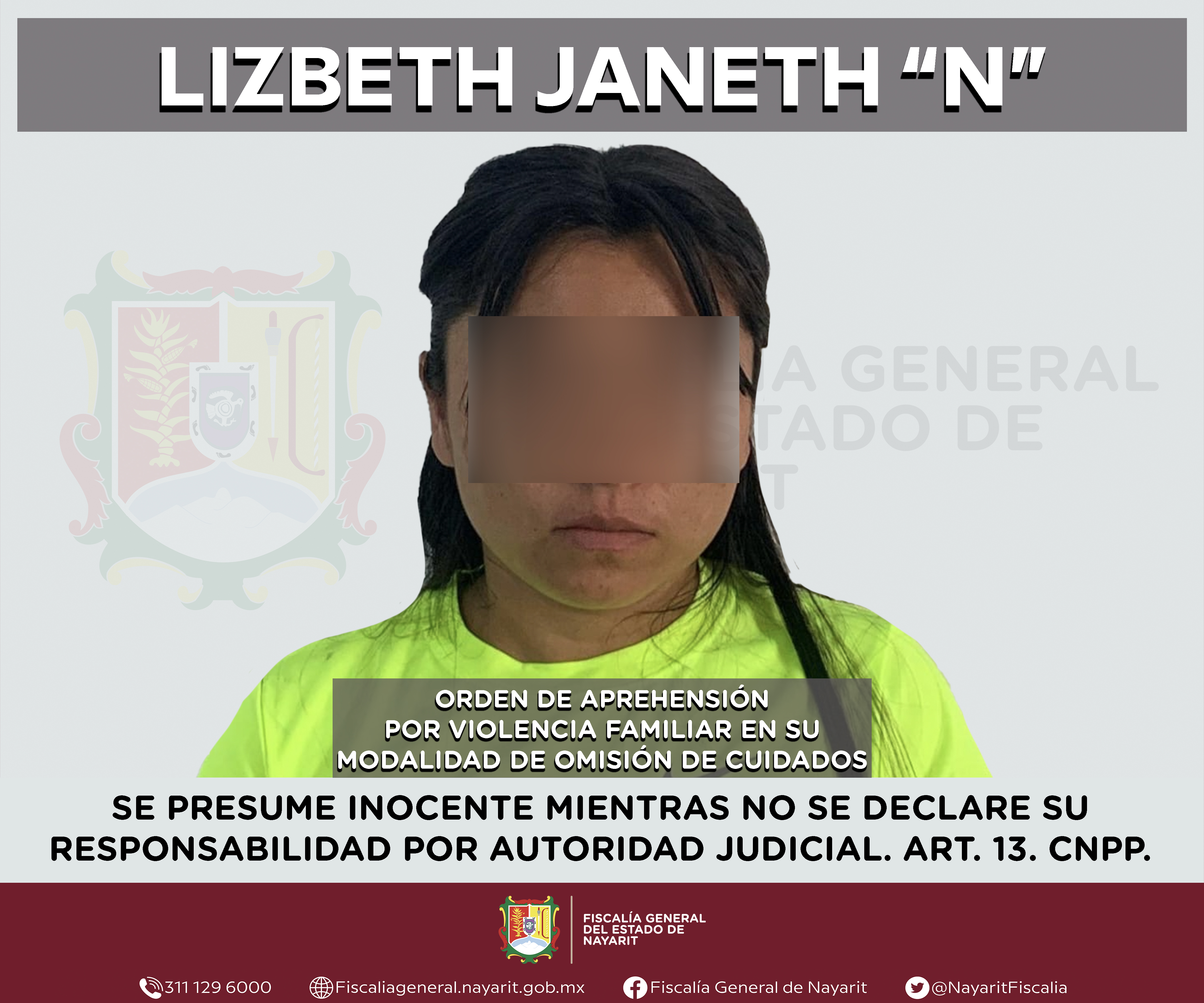 La Fiscalía General de Nayarit a través de la Agencia de Investigación Criminal ejecutó una orden de aprehensión en la ciudad de Tepic contra Lizbeth Janeth “N”, por su probable participación en hechos que para la ley configuran los delitos de ...