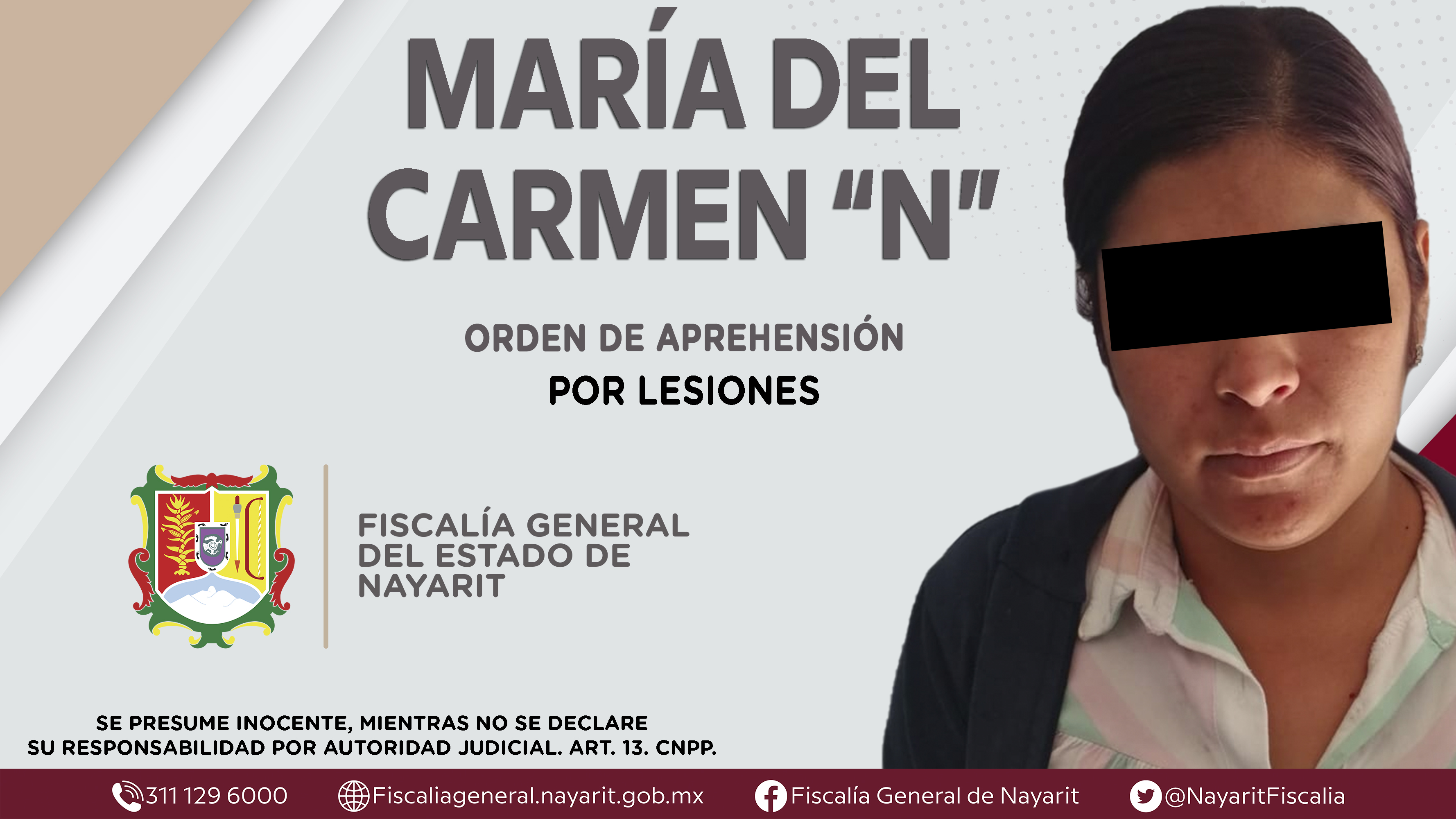 La Fiscalía General de Nayarit a través de la Agencia de Investigación Criminal dio cumplimiento a una orden de aprehensión en el municipio de Xalisco contra María del Carmen “N”, por su presunta participación en hechos que según apreciación ...