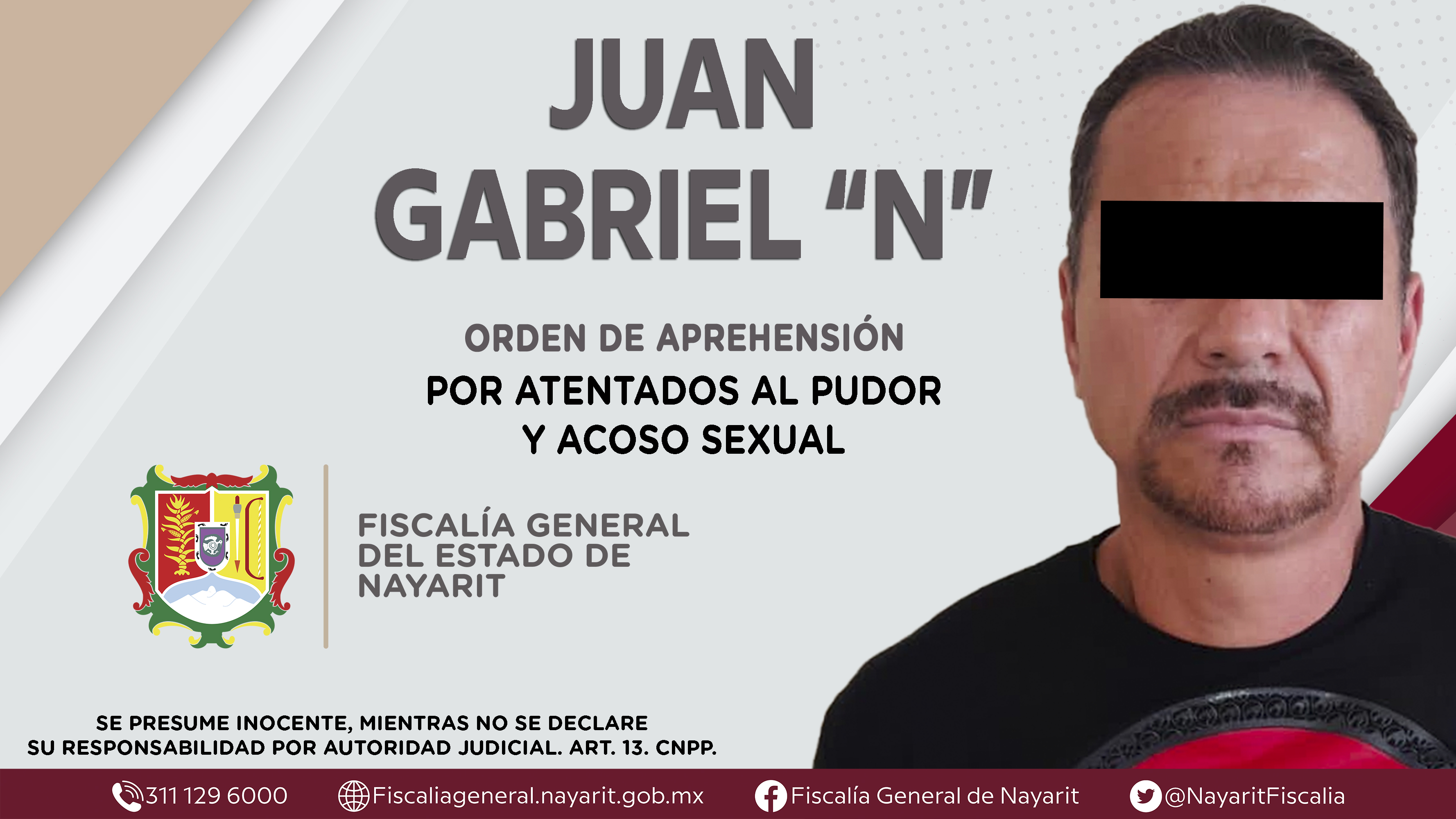 La Fiscalía General de Nayarit a través de la Agencia de Investigación Criminal dio cumplimiento a una orden de aprehensión en el poblado San Vicente, municipio de Rosamorada contra Juan Gabriel “N”, por su presunta participación en hechos que s...
