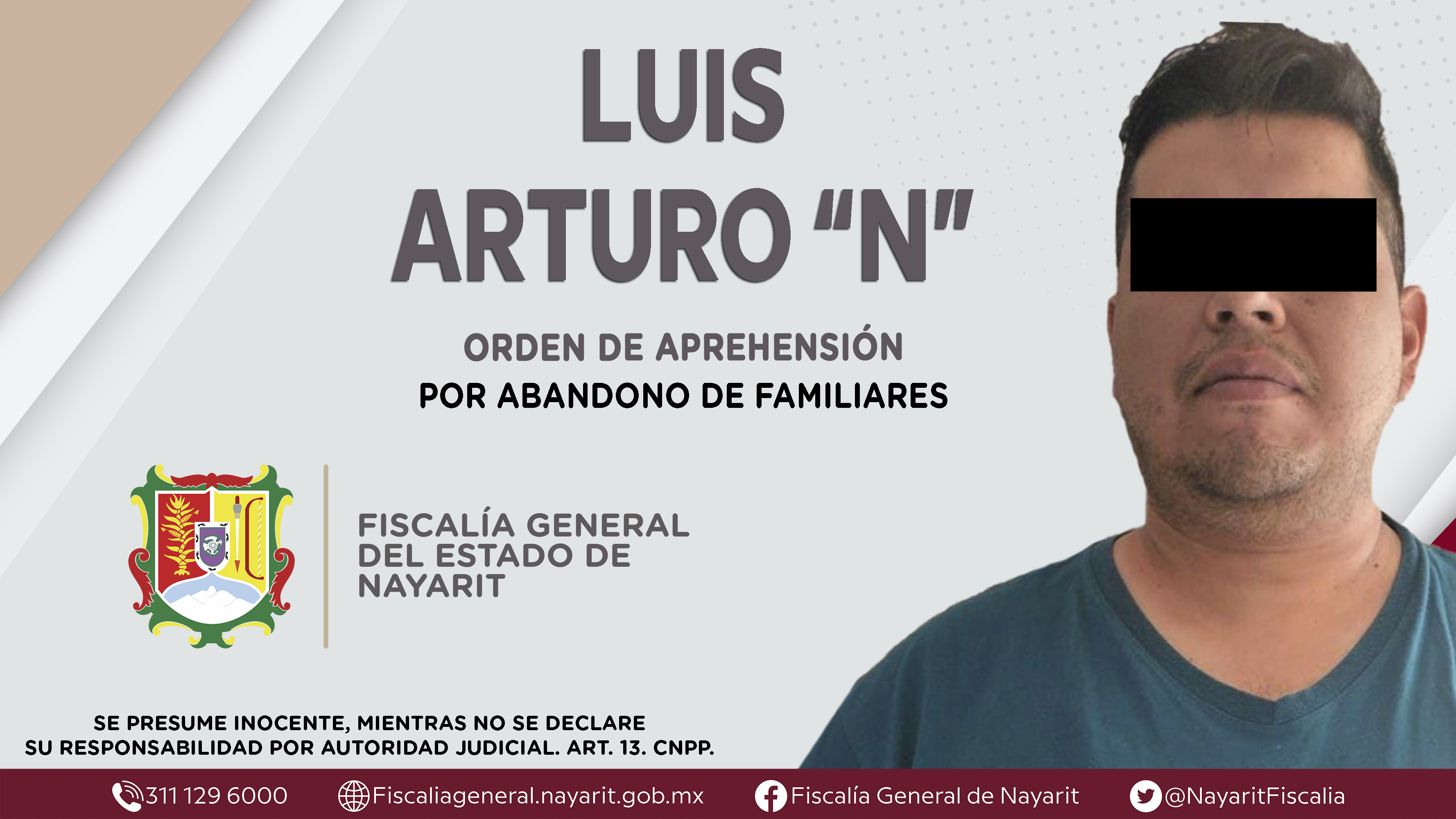 Elementos de la Agencia de Investigación Criminal de Nayarit ejecutaron una orden de aprehensión en la capital nayarita contra Luis Arturo “N”, por su presunta participación en hechos que según apreciación de la ley encuadran el delito de abando...
