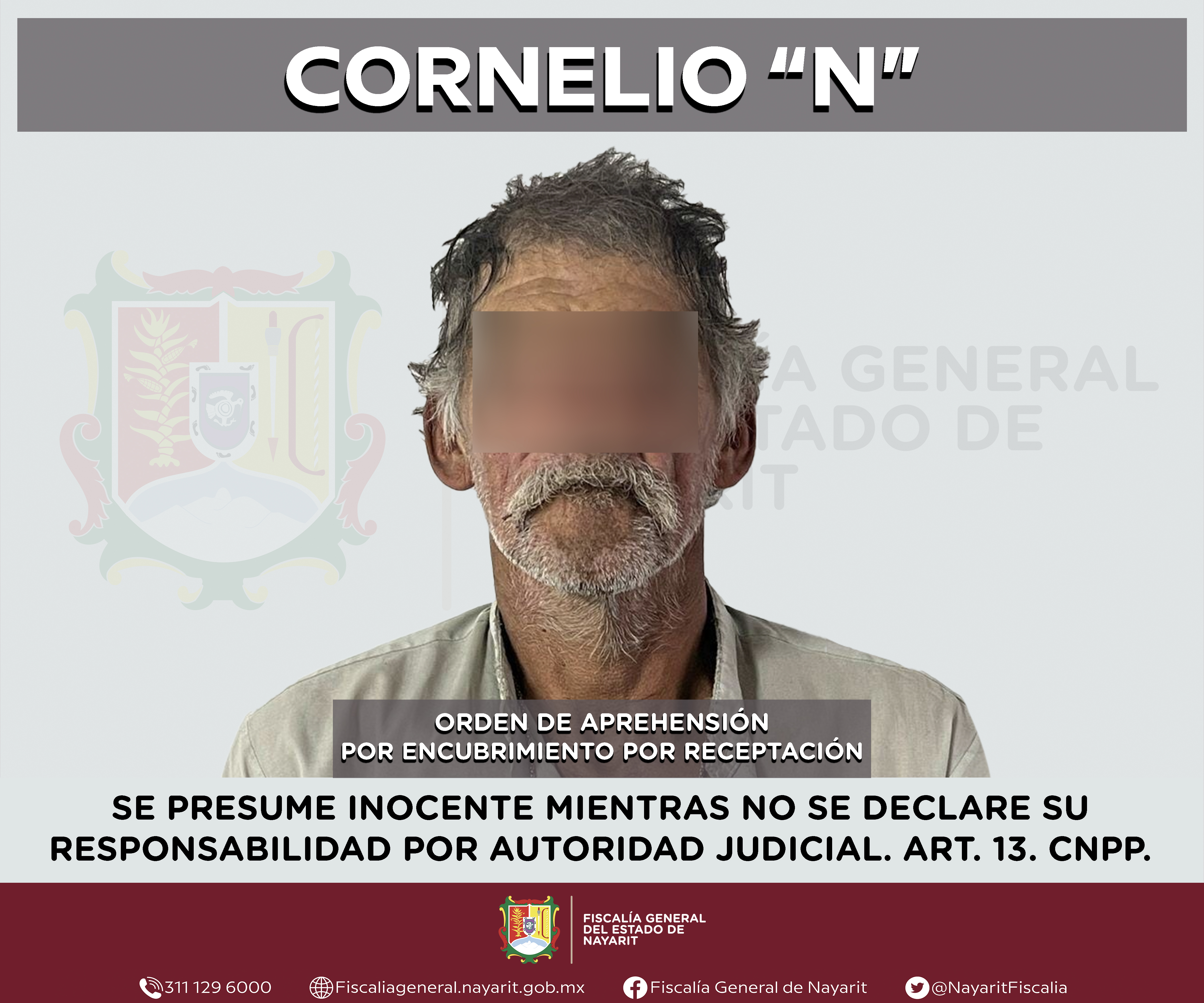 Elementos de la Agencia de Investigación Criminal de Nayarit ejecutaron una orden de aprehensión en la capital nayarita contra Cornelio “N”, por su presunta participación en hechos que según apreciación de la ley encuadran el delito de encubrimi...
