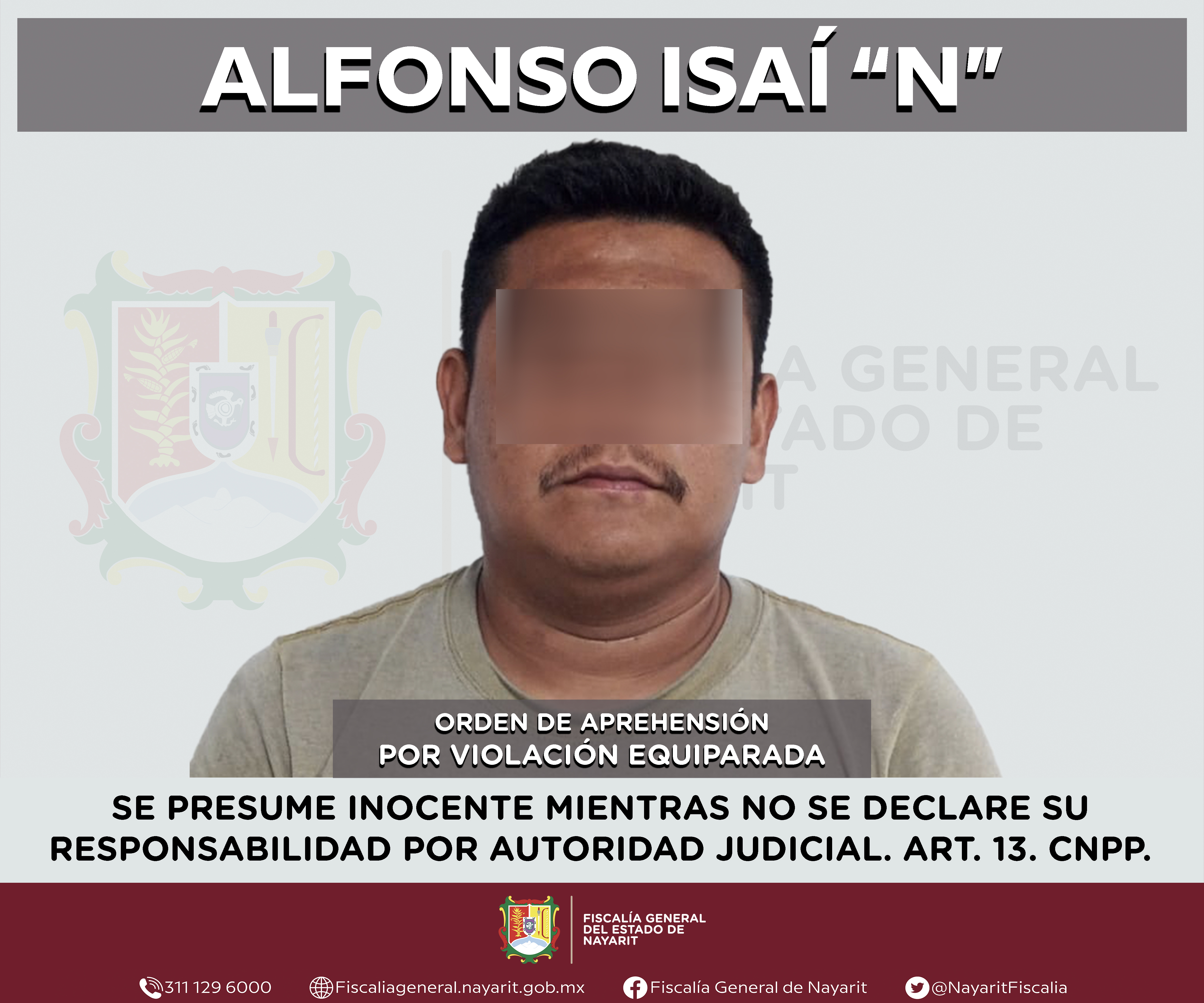La Fiscalía General de Nayarit a través de la Agencia de Investigación Criminal ejecutó una orden de aprehensión en el municipio de San Blas contra Alfonso Isaí “N”, por su probable participación en hechos que para la ley configuran el delito ...